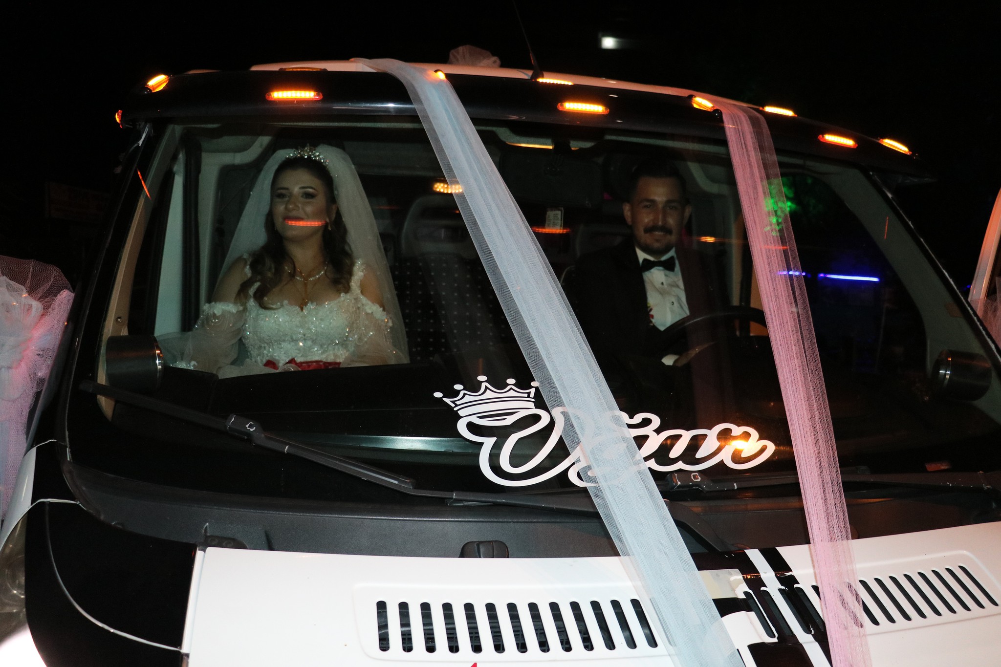 Kentteki bir düğün salonunda gerçekleştirilen düğünle dünya evine giren çiftin gelin aracı ise dikkat çekti.