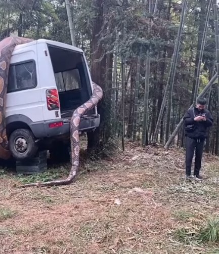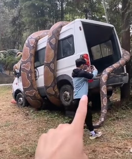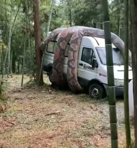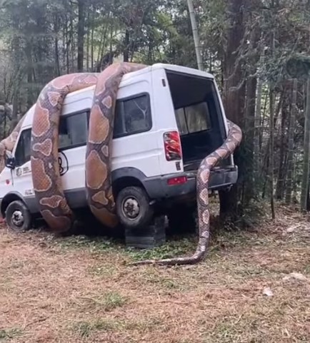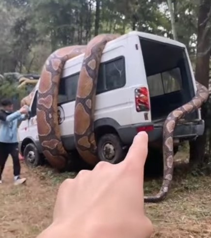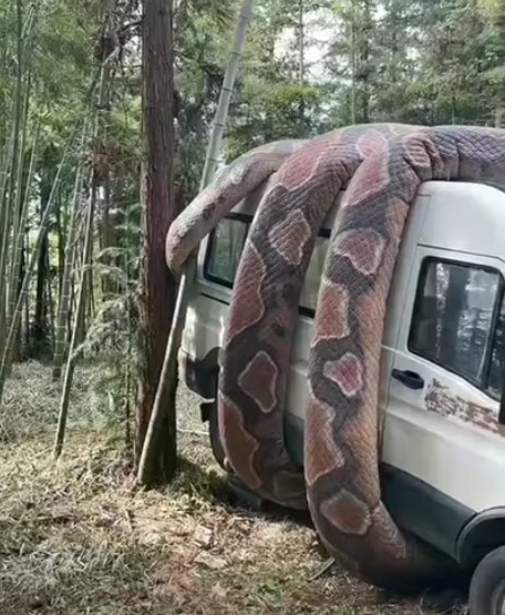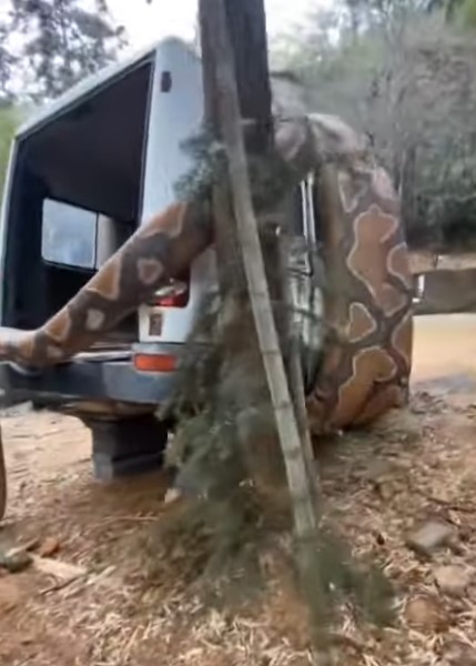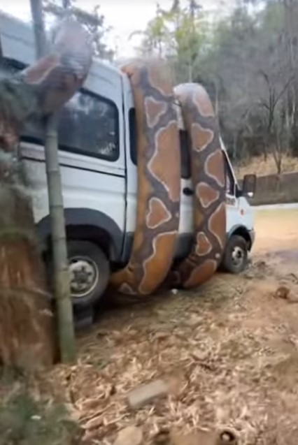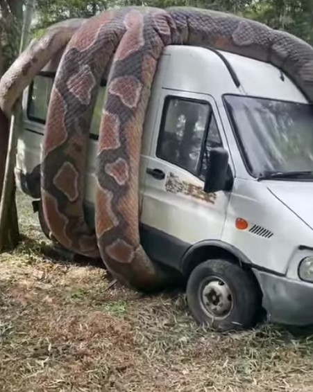 Sosyal medyada paylaşılan ve milyonlarca kez izlenen video görenleri dehşete düşürdü. Dev anakonda arabayı sararken, bölgede bulunanlar o anları kaydetti.