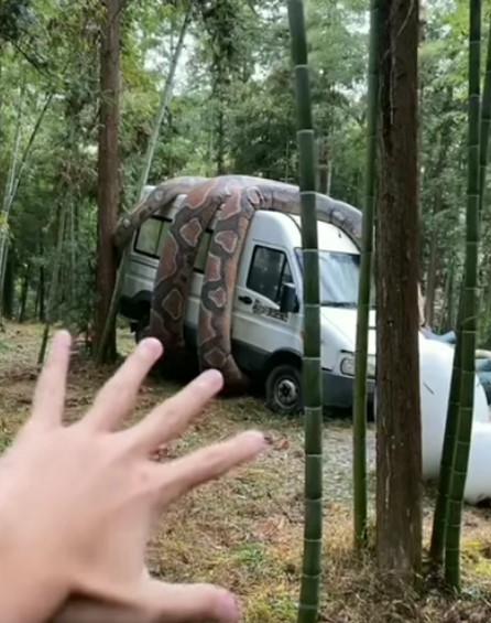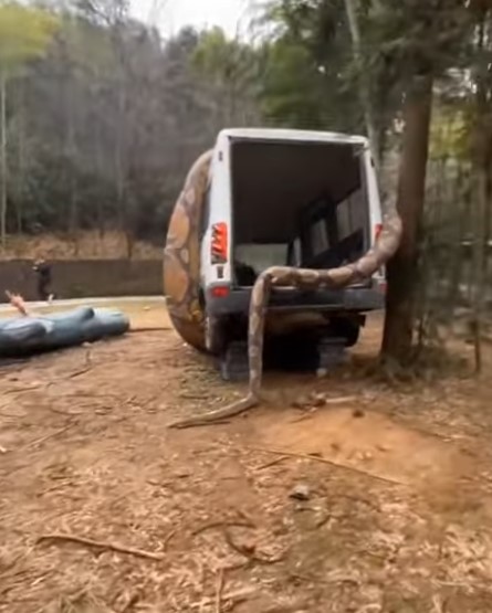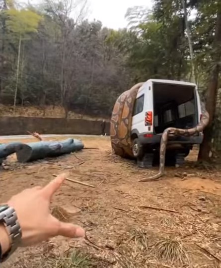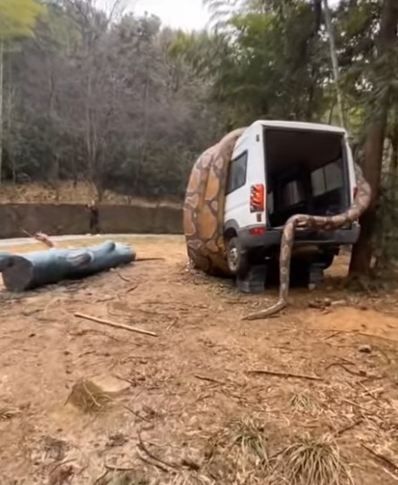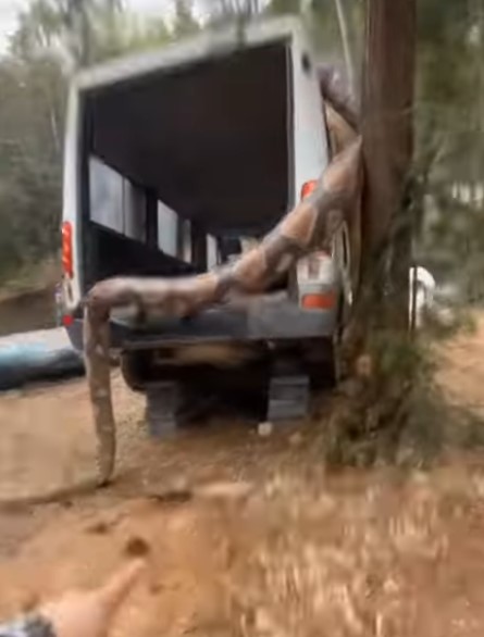 Bu görüntüler dehşete düşürdü! Dev anakonda arabayı sardı
