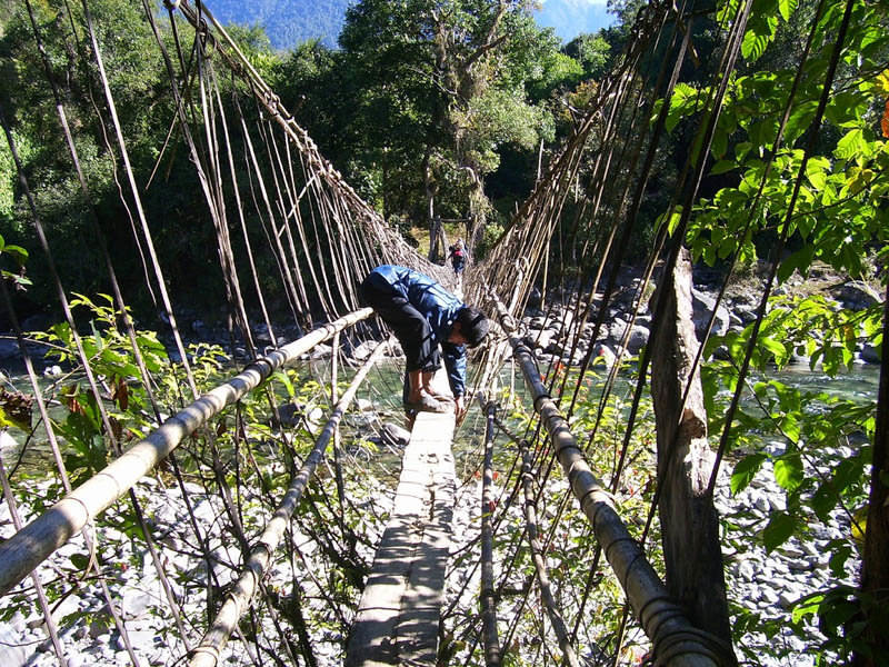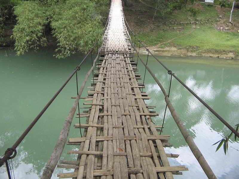 Mekong Nehri, Güney Doğu Asya'da altı ülkeden geçerek Pasifik okyanusuna dökülüyor: Çin, Burma, Laos, Tayland, Kamboçya ve Vietnam. Nehir çoğunlukla sakin akmasına rağmen bazı yerlerde çılgın rapidler (aynı fotoğraftaki gibi) oluşturabiliyor. Yerel halk ise köprüyü kullanmaya çoktan alışmış.