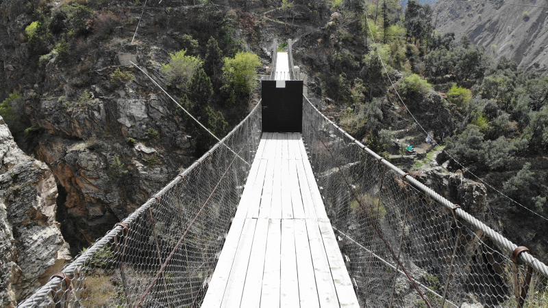 Artvin'in Yusufeli ilçesi Zeytincik köyü Gökçele Mahallesi sakinleri, evlerine ulaşabilmeleri için DSİ tarafından yapılan 70 metrelik asma köprünün ortasına, dört yıl önce güvenlik nedeniyle demir kapı taktırdı.