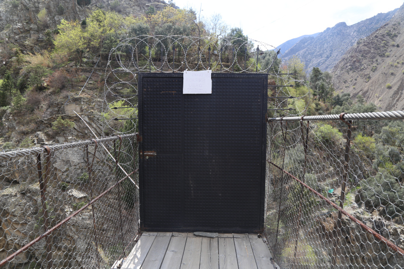 Artvin'in Yusufeli ilçesi Zeytincik köyü Gökçele Mahallesi sakinleri, dört yıl önce güvenlik amaçlı köyün tek ulaşımı olan asma köprünün üzerine yaptıkları demir kapıyı, bu kez korona virüsünden korunmak için kullanıyor. Demir kapıya, 'korona var misafir kabul etmiyoruz' yazısını asan bölge halkı, gelenlerin ise ateşini ölçerek içeri alıyorlar.