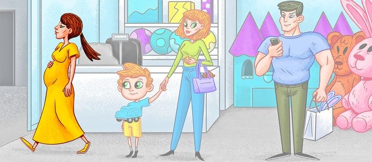 Sarı elbiseli kadın hırsızdır ve dükkandan top çalmıştır. Seçenekleri tek tek elemek gerekirse, çocuğun yapmadığını ipucundan biliyoruz. Yeşil kazaklı kadın ve mavili adamın çantalarında dükkanda satılanların aksine daha küçük boyutlarda peluşlar var. Sarı elbiseli kadın dükkandan bir top çalmış ve hamile dumarası yapmaktadır.
