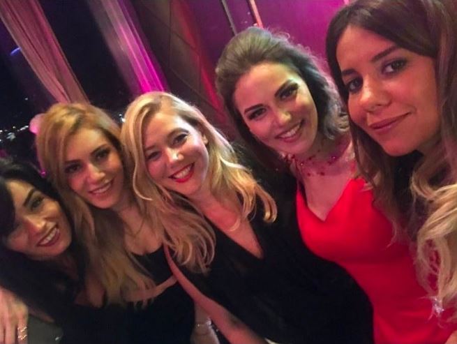 Burak Özçivit ve Fahriye Evcen'in ailelerinin yanı sıra yakın dostları Sinem Kobal, Aslı Enver ve Ebru Akel de geceye katıldı.