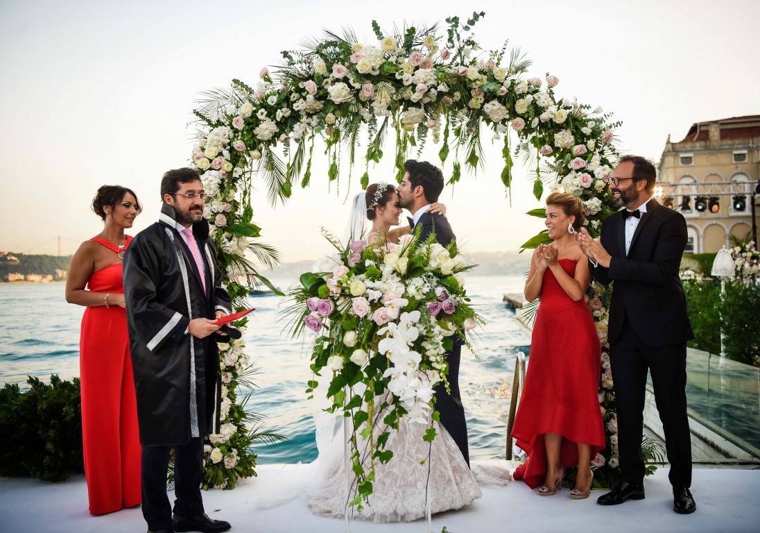 Birlikte rol aldıkları dizi setinde aşk yaşamaya başlayan ünlü oyuncular Fahriye Evcen ile Burak Özçivit Sait Halim Paşa Yalısı'nda düzenlenen nikah töreniyle dünya evine girdi.