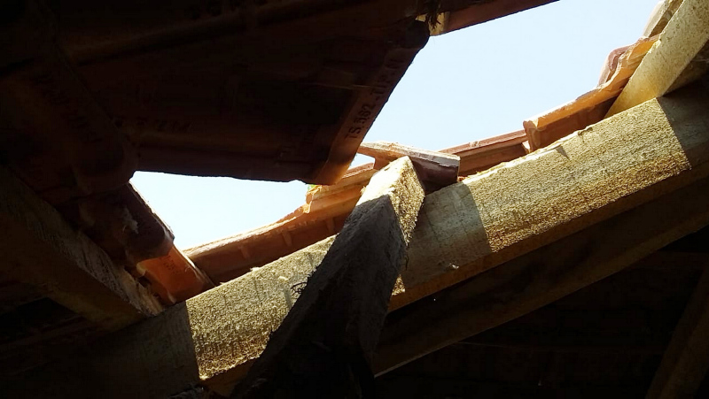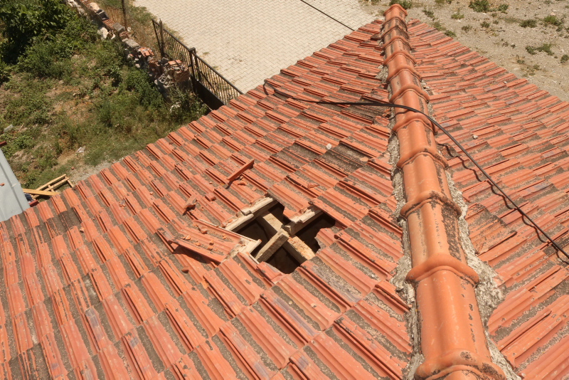 Burdur'da uçaktan eve düşen düşen buz kütlesi çatıyı deldi