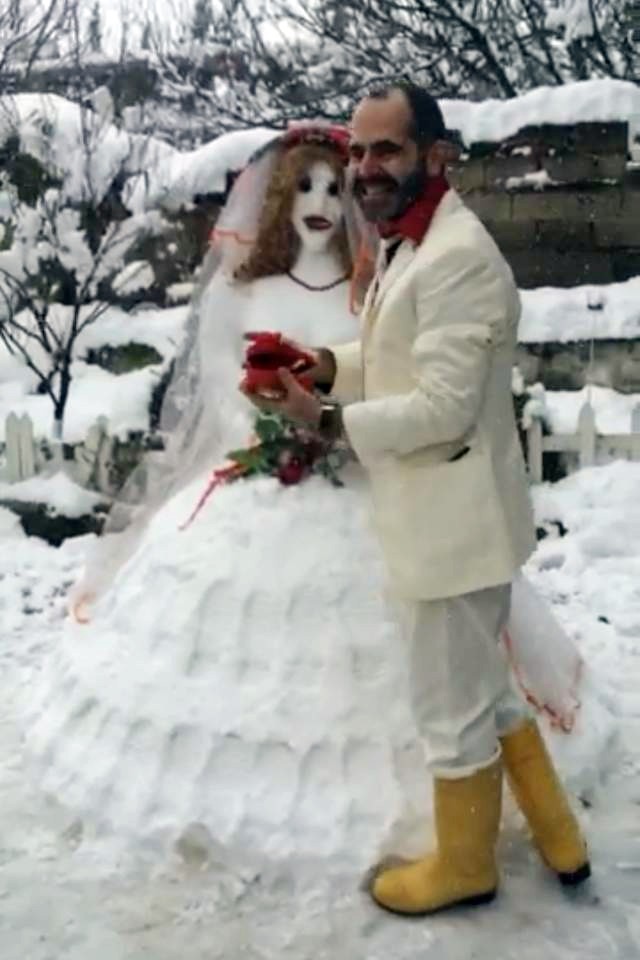 Bursa’da 7 yıl önce kardan yaptığı kadınla evlendi! Şimdi de bakın ne hediye etti