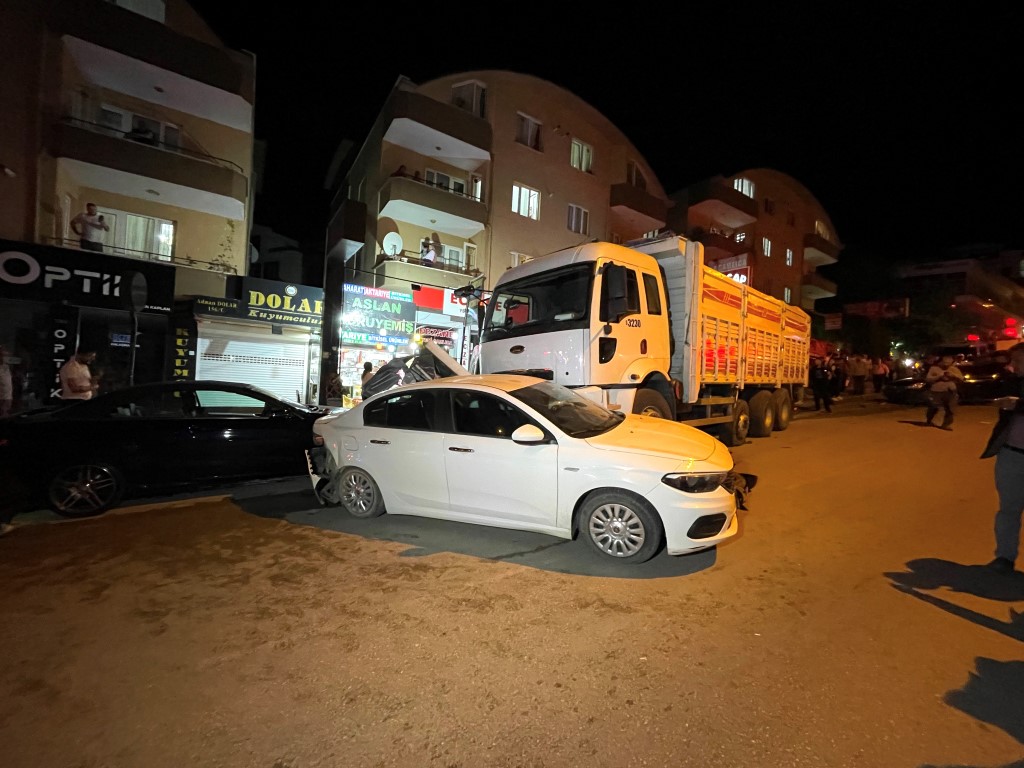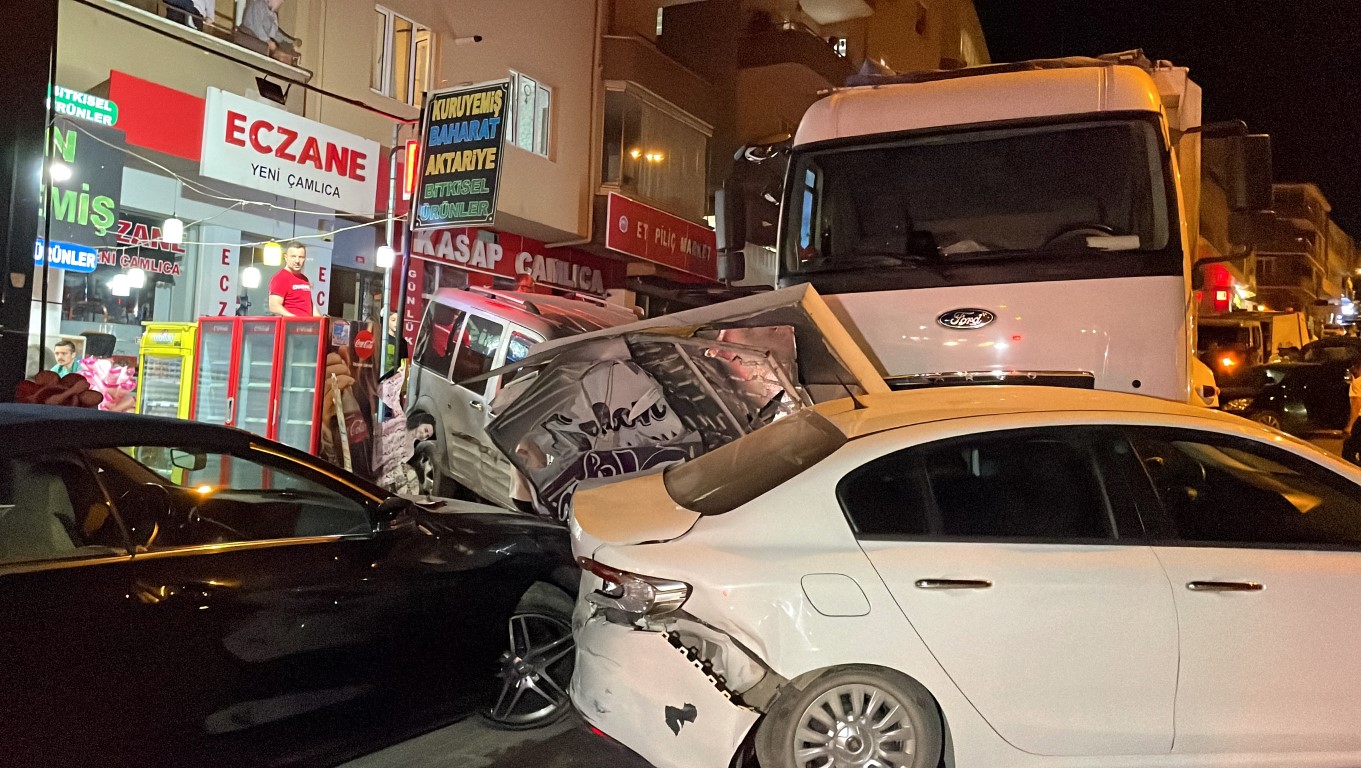 Daha sonra yokuş aşağı park halindeki otomobillere çarparak ilerleyen kamyon, kaldırıma çıkarak durdu.