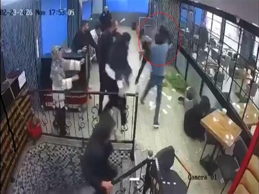 Masa ve sandalyeler ile iş yerindeki bazı eşyaları birbirine atan taraflar diğer müşterilerin araya girmesi ile güçlükle ayrılırken, kavga güvenlik kamerasına yansıdı.