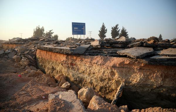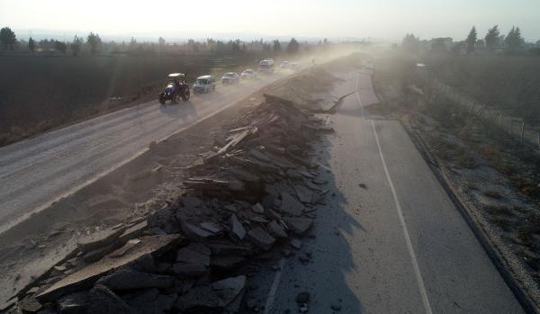 Yaklaşık 2 metreyi bulan çökmeler, karayolunu enkaza çevirirken, mahalle sakinleri patlamalar duyulduğunu söyledi.