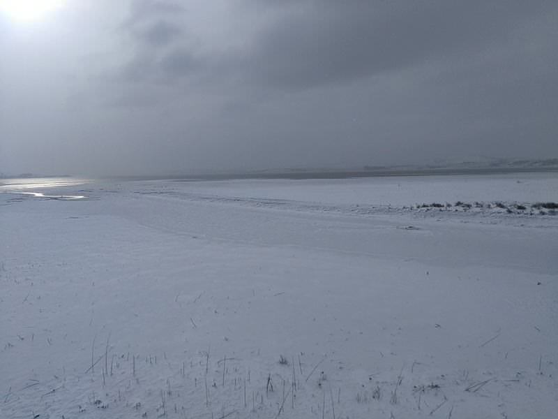 İstanbul'de etkili olan soğuk ve kar yağışı, Büyükçekmece Gölü'nün donmasına neden oldu.