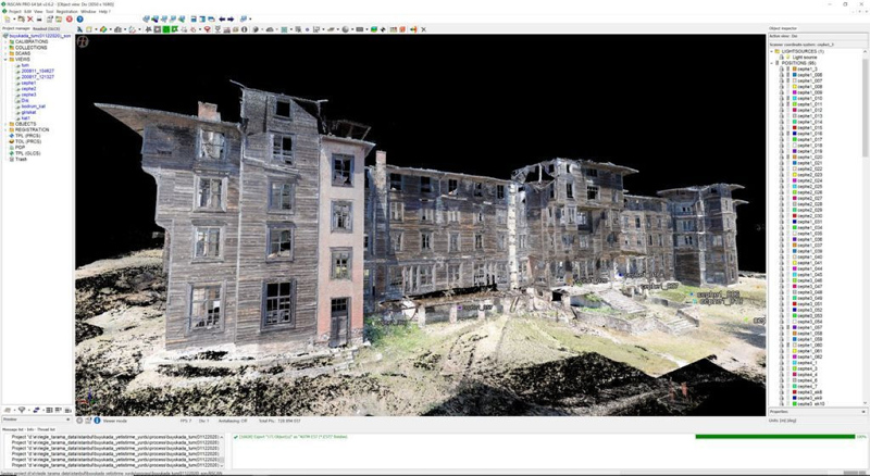 Genel Müdür Yardımcısı Nazım Akkoyunlu, "Büyükada Rum Yetimhanesi için bir dijital belgeleme çalışması yürüttük. Belgeleme çalışması için öncelikle alanın mevcut durumunu ortaya koyan bir rölöve çalışması çıkarmamız gerekti. Yapının bugünkü haline baktığımız zaman ciddi hasar almış olduğunu görüyoruz. Bizler de vakit kaybetmemek adına hemen harekete geçtik ve yaklaşık 45 günlük bir çalışmayla yapı için çözünürlüğü yüksek bir veri oluşturduk. Bu veriyi nokta bulutu dediğimiz tarayıcı ile gerçekleştirdik" dedi.