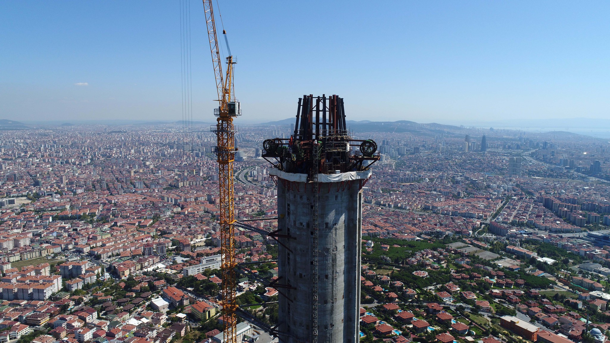 Yapımı tamamlandığında Paris'in simgesi haline gelen Eyfel Kulesi'nden daha yüksek olacak olan Çamlıca Tv kulesinin tamamlanması için sadece anten kısmı kaldı. Devam eden çalışmalar havadan görüntülenirken, Çamlıca Kulesi'nin içerisinde montajı yapılacak anten, kule içerisinden asansör sistemi ile yükseltilecek.