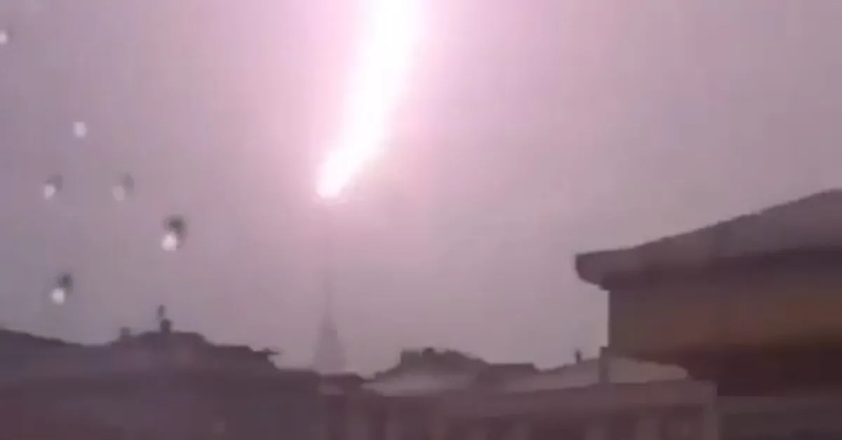 Çamlıca Kulesi'nin üzerindeki paratonere yıldırım düştüğü anlar cep telefonu kamerasına kaydedildi. Amatör kameralara yansıyan görüntüde, çakan şimşeklerle gökyüzünün aydınlandığı görüldü.