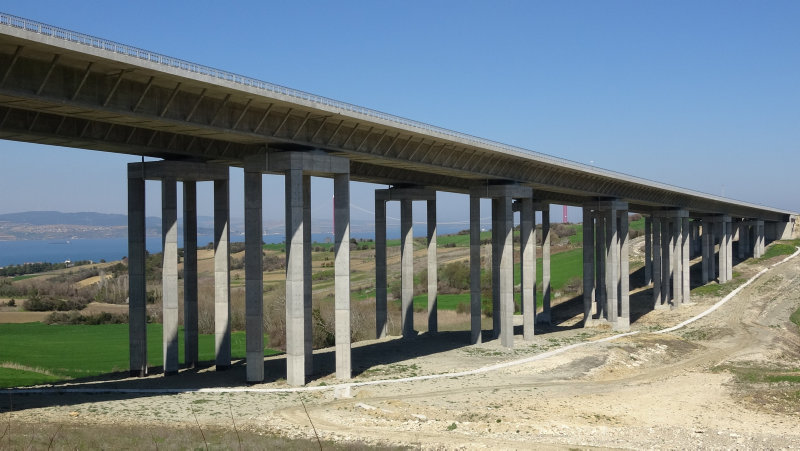 1915 Çanakkale Köprüsü ile birlikte açılışı yapılan 101 kilometre uzunluğundaki Malkara-Çanakkale Otoyolu'nun Gelibolu yakasındaki Kocadere Viyadüğü ayakları 38 metrelik, Lapseki yakasındaki Suluca Viyadüğü ayakları ise 46 metrelik yüksekliğiyle dikkat çekiyor.