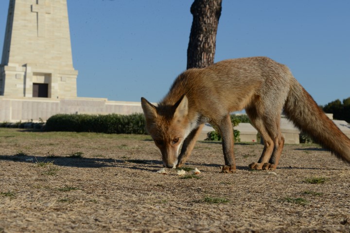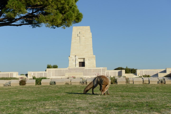 Tarihi Gelibolu Yarımadası'nda yabani tilkinin bölgeyi gezmeye gelen turistlerden kaçmaması görenleri şaşırtıyor.