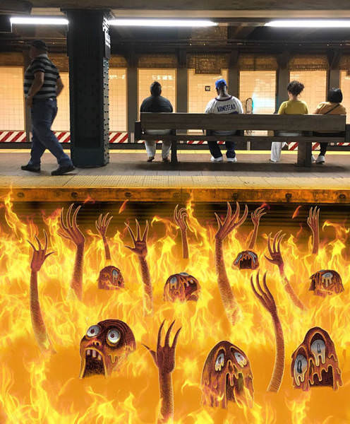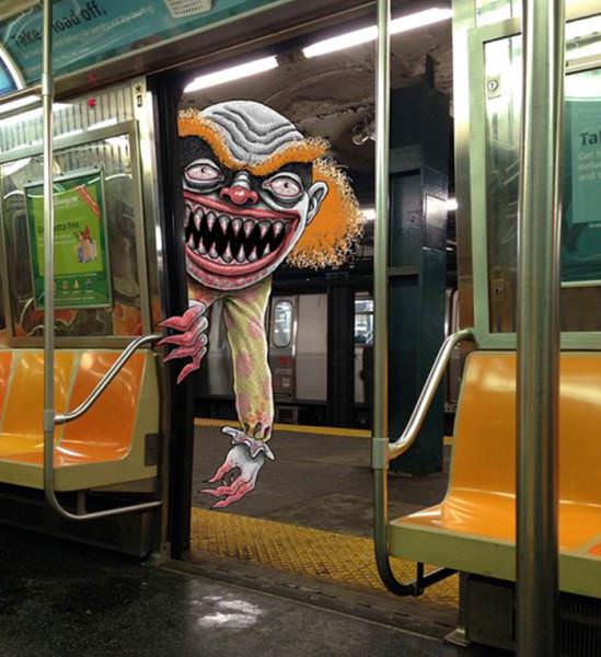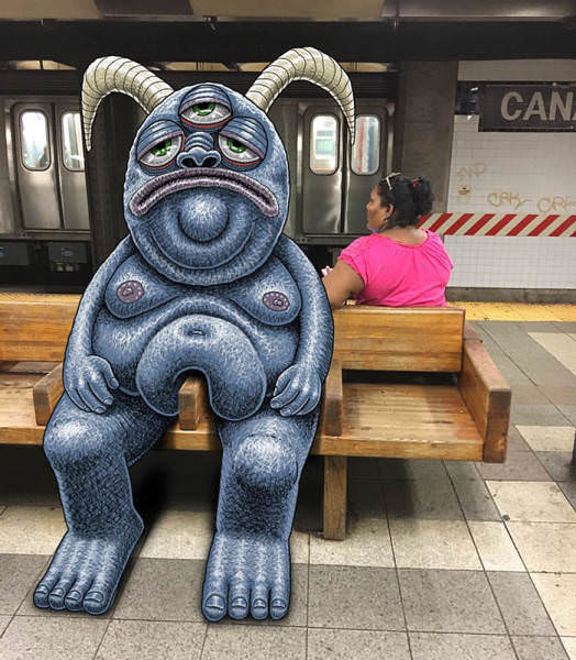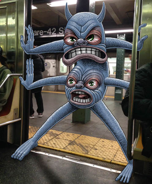 Instagram'da "Subway Doodles" hesabıyla paylaşımlar yapan Ben Rubin isimli sanatçı, metroda çektiği fotoğraflara canavar çizimleri ekleyerek ilginç çalışmalar ortaya çıkarmış.