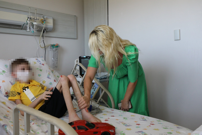 Akdeniz Üniversitesi Hastanesinde 16 gündür tedavisine devam edilen 9 yaşındaki Cem Muhammet A.'yı AÜ Rektörü Prof. Dr. Özlenen Özkan ve Hastane Başhekimi Prof. Dr. Yıldıray Çete ziyaret etti.