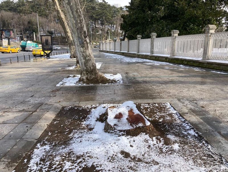 İBB Park Bahçe ve Yeşil Alanlar Daire Başkanlığı tarafından mart ayı başında kanser olduğu ve hastalığı diğer ağaçlara bulaştırma riski bulunduğu gerekçesiyle Dolmabahçe ve Çırağan caddelerinde kestiği ağaçların bir kısmının yerine yenilerinin dikilmediği, bazı ağaçların kesildiği şekliyle kaldığı, bazı ağaçların ise kesildikten sonra köklerinin çıkarıldığı ve çukurun etrafının betonla çevrildiği görüldü.