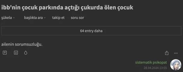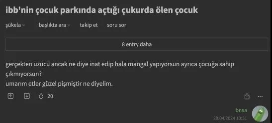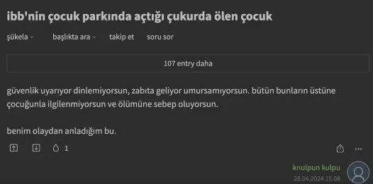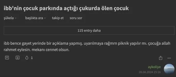 İstanbul Küçükçekmece'deki kazı çalışmasında çukura düşen 5 yaşındaki Edanur Gezer hayatını kaybetti. CHP'li İBB, korkunç ihmal sonrası Edanur'un boğulduğu çukurun olduğu yerin etrafına güvenlik şeritleri ve bariyerler çekildi. Ölüm çukurunun başına da güvenlik görevlileri dikildi. Olay sonrası İBB'den yapılan açıklama ise pes dedirtti. Provokasyon yuvası Ekşi Sözlük'te de acı olayla ilgili iğrenç yorumlara yer verildi.
