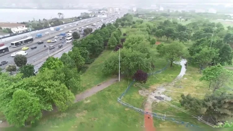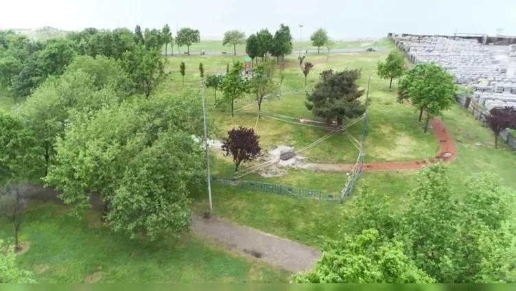 Edanur'un öldüğü Menekşe Sahil Parkı bugün havadan görüntülendi. Çukurun olduğu yerin etrafına güvenlik şeritleri ve bariyerler çekilirken, başında güvenlik görevlilerinin beklediği gözlendi.