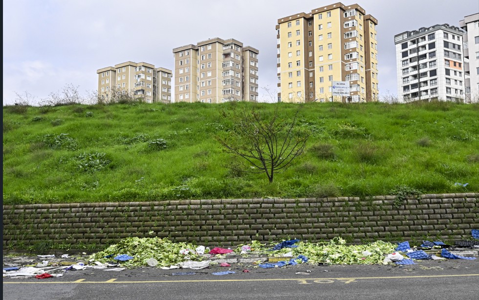 İlçedeki Kışlalı Caddesi'nde pazartesi günleri kurulan semt pazarının çöpleri, işçilerin çalışmaması nedeniyle yolda kaldı. Konteynerlerin çöple dolup taştığı görüldü