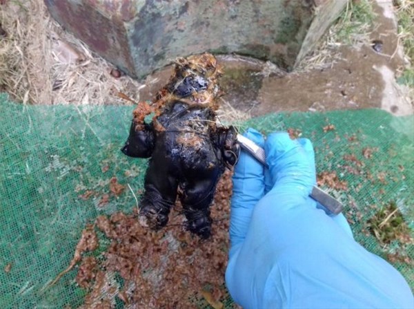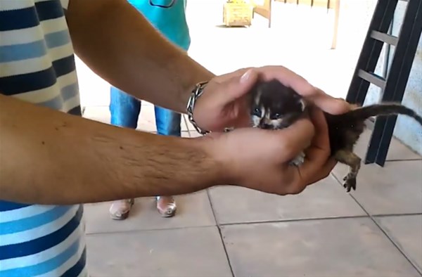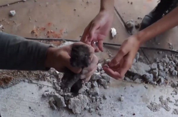 Kırılan betonun altında minik bir kedi yavrusu olduğunu fark eden bölge halkı onu son anda ölümden kurtardı.