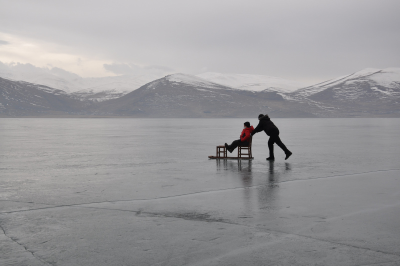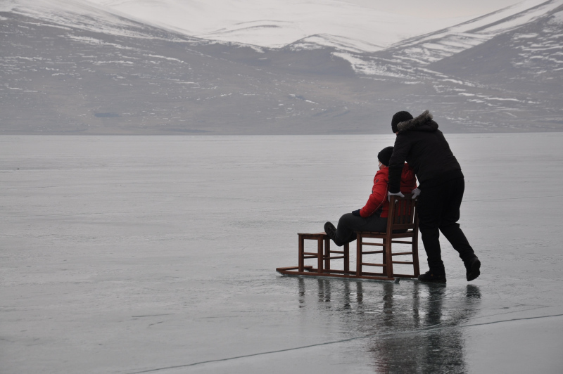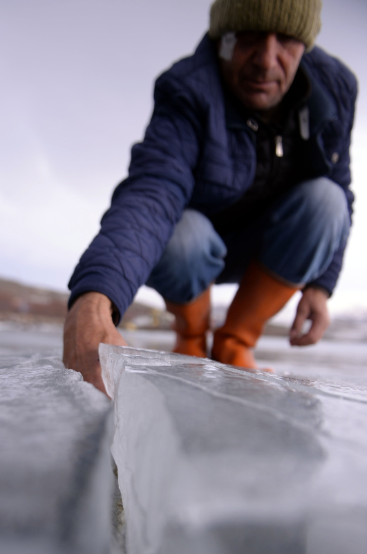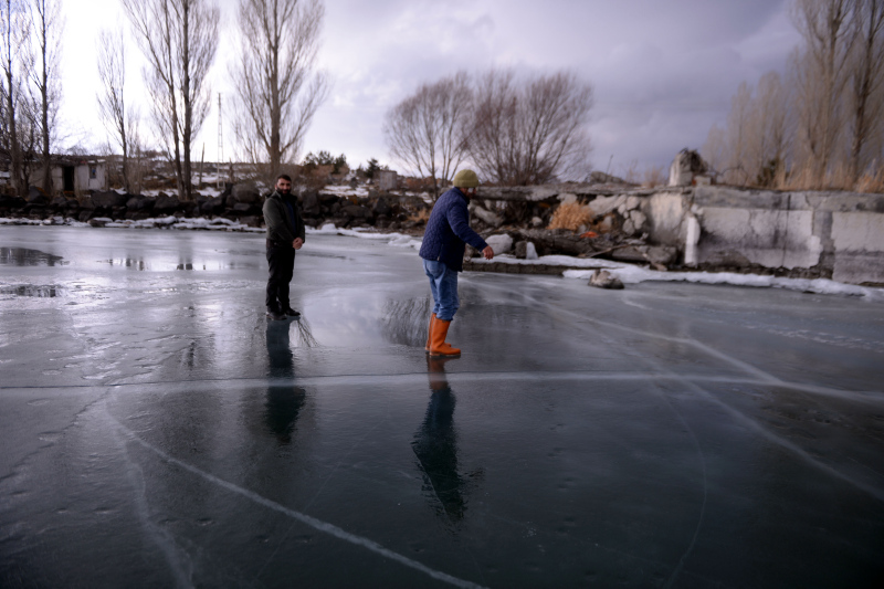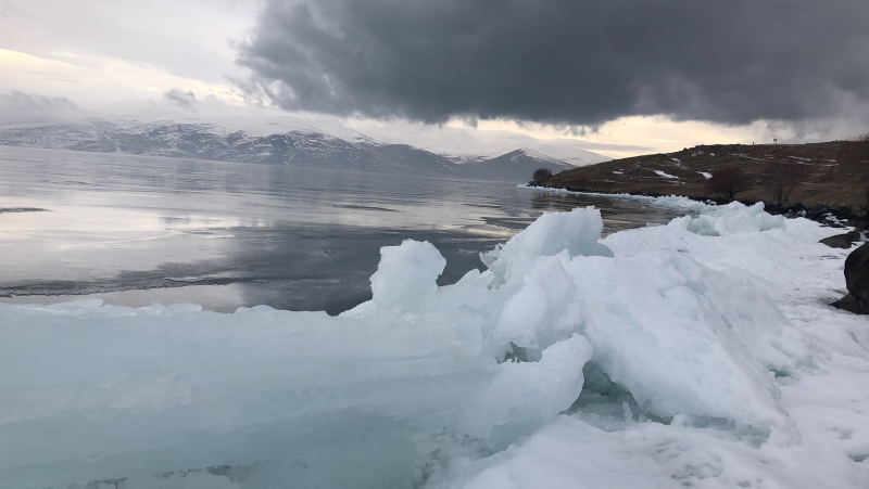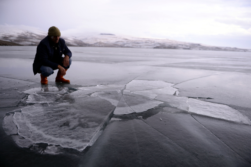 Buralarda normalde bu zamanda festival yapılırdı, kızaklar kayardı, arabalar rafting yapardı ama bu sene erkenden çözüldü. Sadece kıyı tarfındanki buzlar sağlam" diye konuştu.
