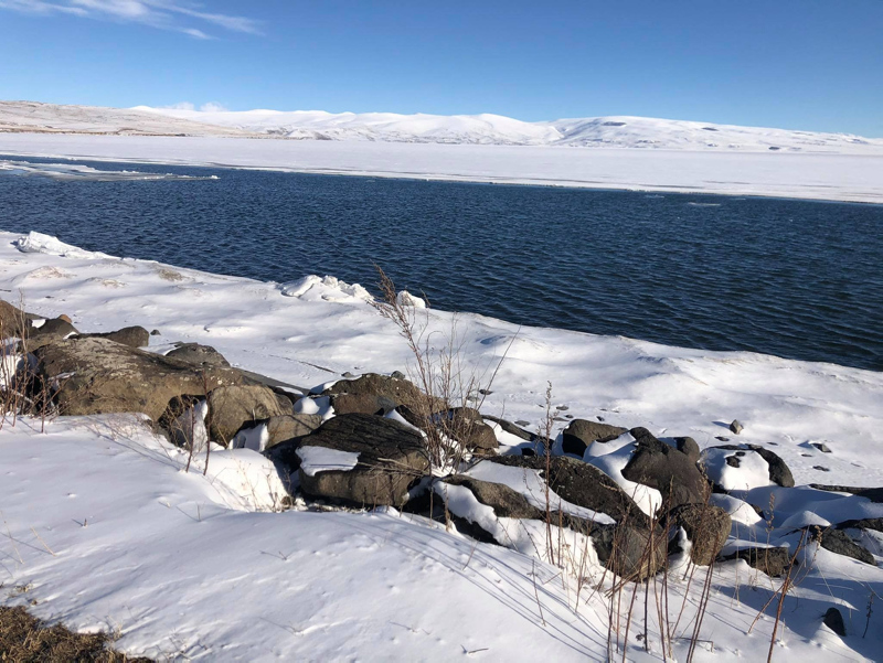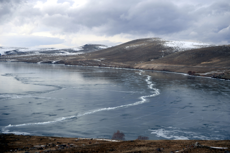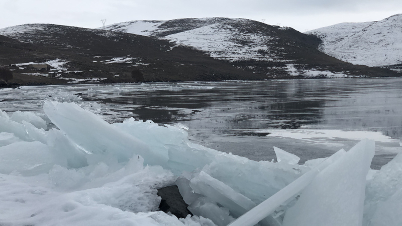 Çıldır Gölü nerede | Ardahan'ın Çıldır ilçesindeki yüzeyi buz tutan Çıldır Gölü, rüzgar ve sıcak havanın etkisiyle çözülmeye başladı. Buzların erimesiyle göl ikiye bölünmüş bir görüntüye sahip oldu.