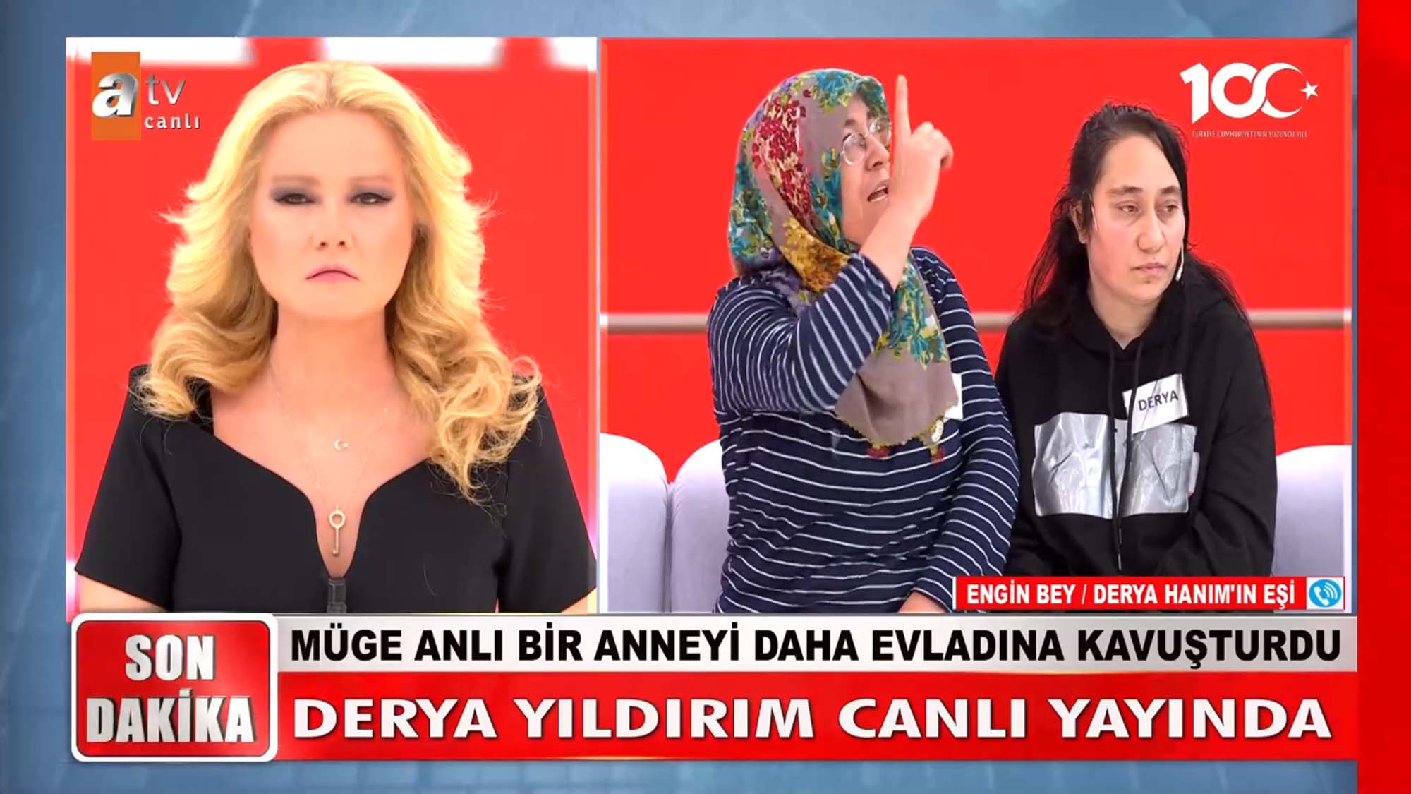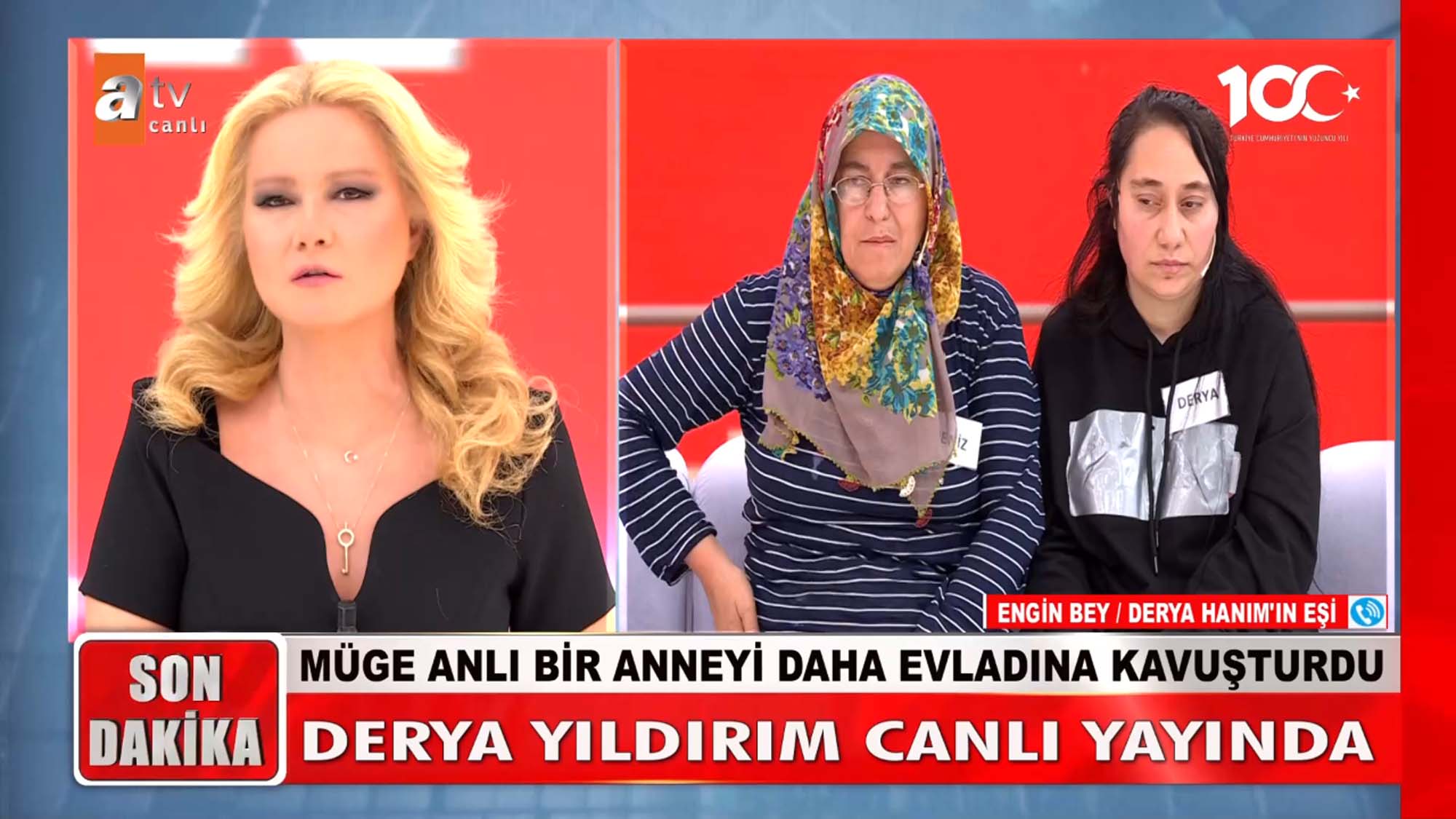 Eskişehir'de eşi ve 2 çocuğuyla birlikte yaşayan Derya Yıldırım, ziynet eşyalarını da alarak 9 Kasım'da ortadan kayboldu. Müge Anlı ile Tatlı Sert programına katılan anne Deniz Hanım, kızını takıntı haline getiren İlhan adındaki şahsın kaçırmış olabileceğini iddia etti. Kaybının 6. Gününde Ankara'da olduğu öğrenilen Derya canlı yayına geldi. Kızına kavuşan Deniz Hanım sevinçten havalara uçtu. Derya'nın eşi Engin ile yüzleştiği anlar ise yayına damga vurdu. İşte yaşananlar...