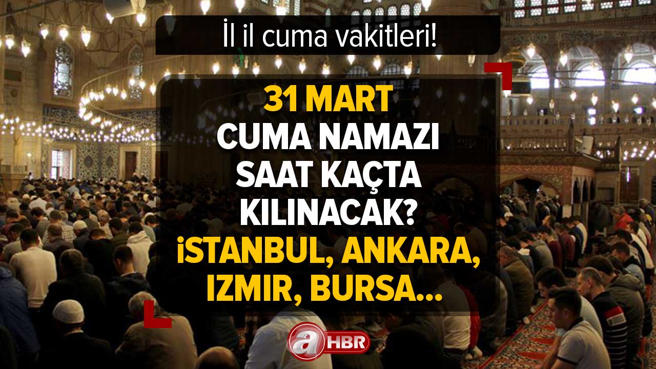 Diyanet İşleri Başkanlığı'nın "namazvakitleri.diyanet.gov.tr" internet sitesi üzerinden, il il 31 Mart 2023 cuma namazı saatleri belli oldu. Bu hafta cuma namazı vakitleri şöyle olacak;