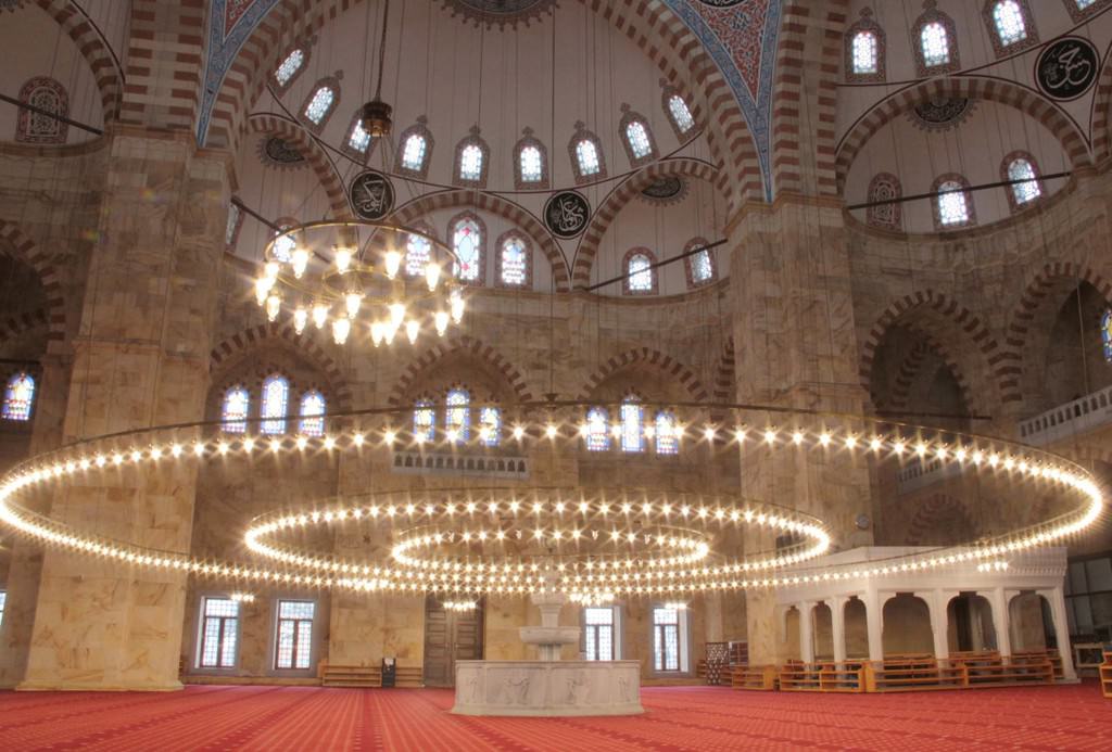 "Çelik taşıyıcı üzerinde monte edilip de gövde taşınıyor. Bizim camimiz, dedelerimizin yaptığı gibi 130 santimetre duvar kalınlığı yığma taş olarak yükseliyor. Dolayısıyla çok büyük bir malzeme gidiyor, çok büyük işçiliği var. İçeride de bazı unsurları taşla yaptık. Mesela diğer büyük camilerde iç mekanlardaki kemerler kırmızı boyayla gösterilmiş ama biz onu kırmızı taş olarak koyduk. Dolayısıyla bu bir maliyet ve işçilik. Mukarnaslar, camilerimizde geçmişte alçıyla yapılmış, biz bunu taşla yaptık."