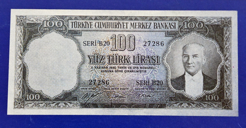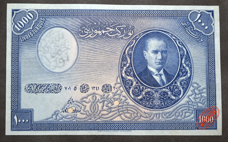 1925 sonunda Türkiye Büyük Millet Meclisi'nde kabul edilen "Mevcut Evrak-ı Nakdiyenin Yenileriyle İstibdaline Dair Kanun" ile basılan Türkiye Cumhuriyeti'nin banknotları arasında 1 lira, 5 lira, 10 lira, 500 lira ve 1000 liralık banknotlar bulunuyor.