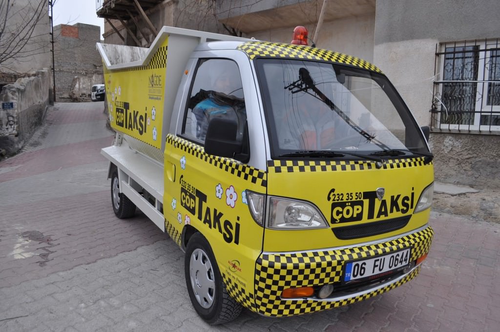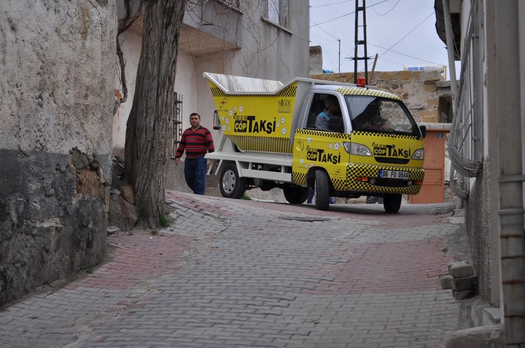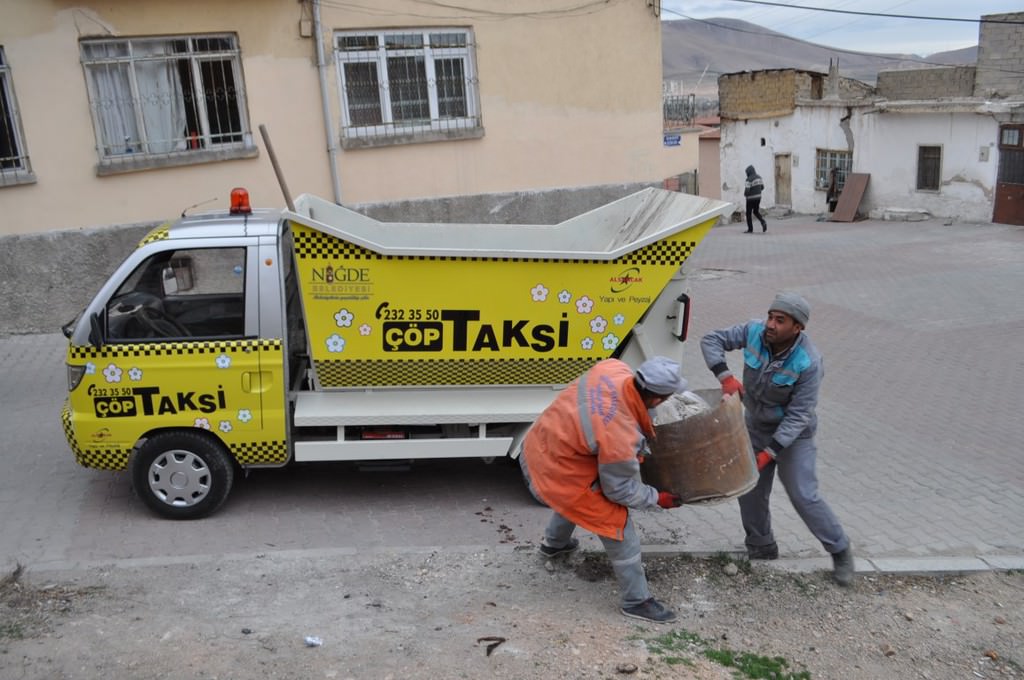 Niğde'de, dar sokaklarda çöplerin toplanabilmesi için "çöp taksi" uygulaması başlatıldı. Belediyenin Temizlik İşleri Müdürlüğü bünyesinde kullanılmaya başlanan "çöp taksi" adı verilen kamyonetle, gün içinde cadde ve sokaklarda dolaşılarak, biriken çöpler toplanıyor.
