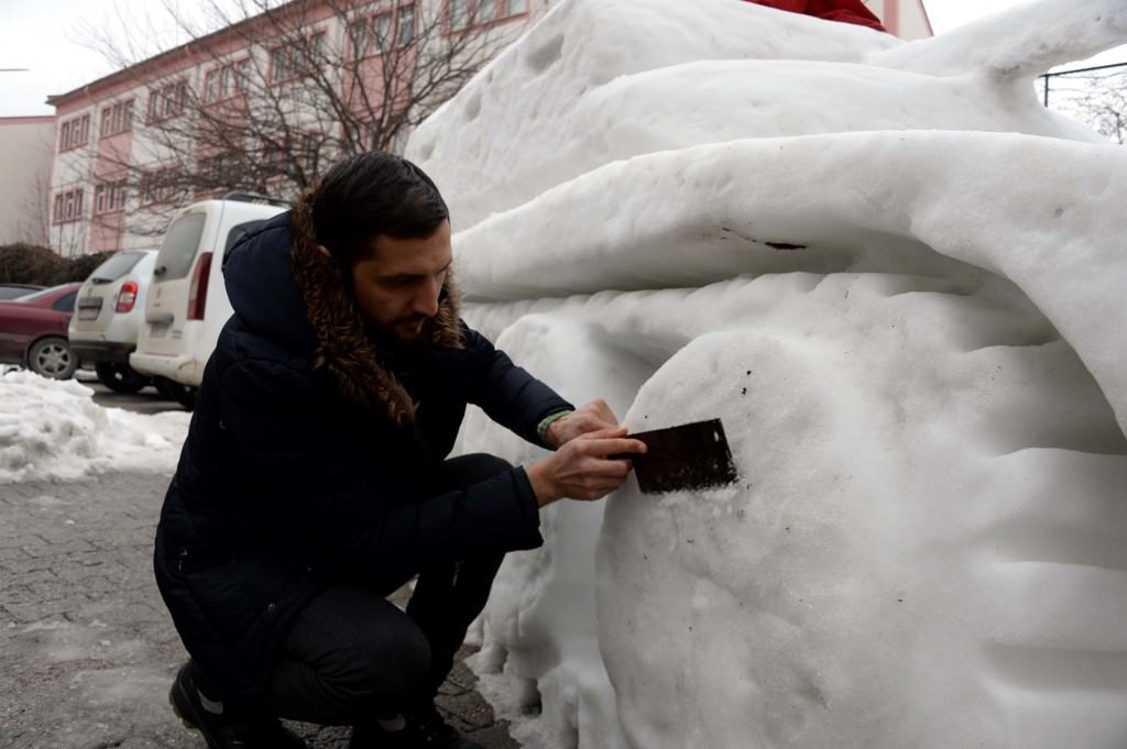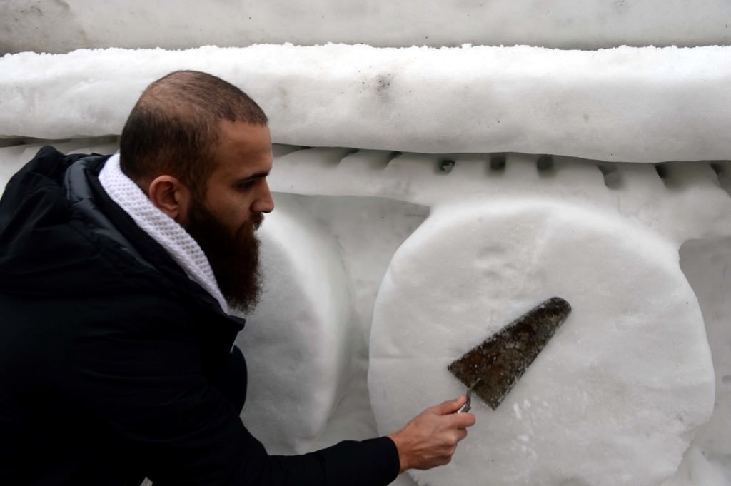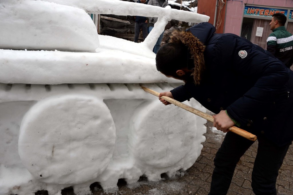 Kardan tankı yapmak için 7 gün uğraştıklarını anlatan Yasir Sarıca, "Yaklaşık 50 kişi ile karı istifledik. Yontma işi ise kardeşim Şehit ve bana ait. Vatandaşlar buradan geçerken bize 'helal olsun' diyor." ifadesini kullandı.