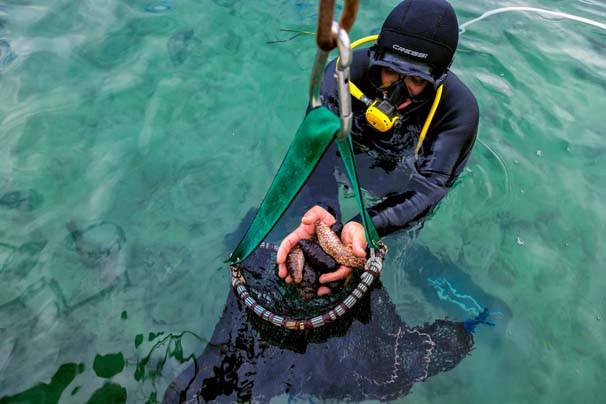 Hong Kong başta olmak üzere ABD, Namibya, Tayvan ve Vietnam'a gönderilen deniz patlıcanı, geçimini denizden sağlayan dalgıçların da gelir kapısı oldu.