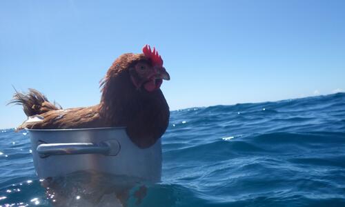 Denizin ortasında tencere içindeki pozuyla sosyal medyayı sallayan tavuk herkesi şaşırttı. Fransız gezgin Guirec Soudee, Monique adını verdiği tavuğu ile birlikte dünyayı gezerken, çektiği fotoğraflar gündem oldu.