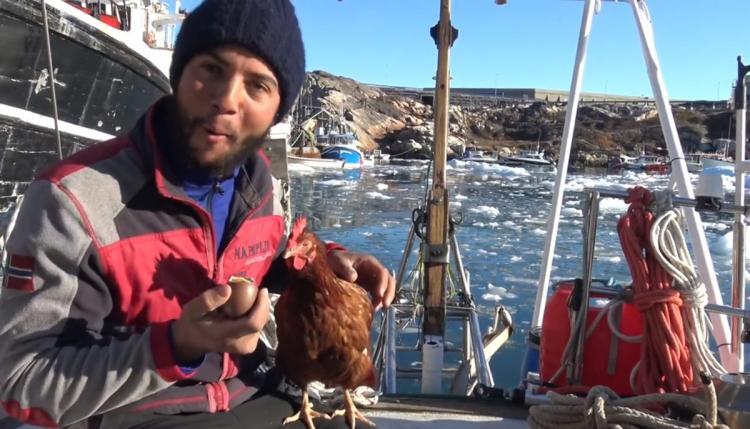 Hava koşullarının ve çoğunlukla denizin durumunun oldukça zorlayıcı koşullara gelmesine tavuk Monique kısa sürede alışmış.