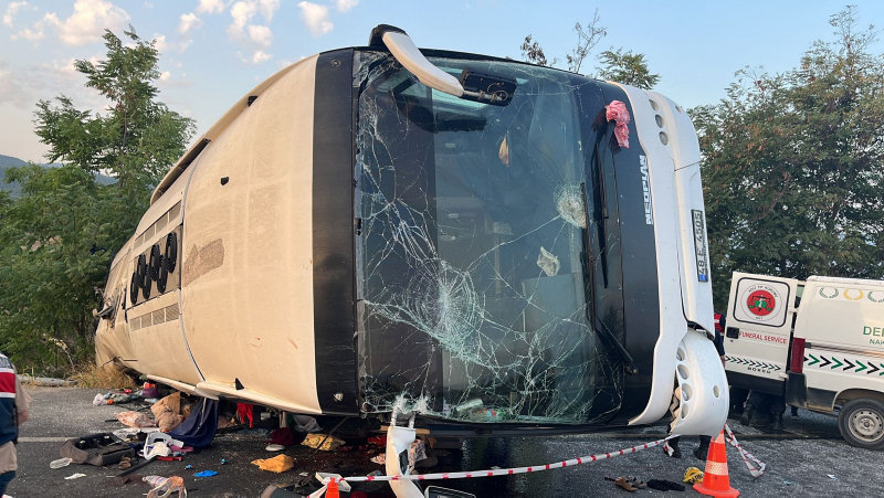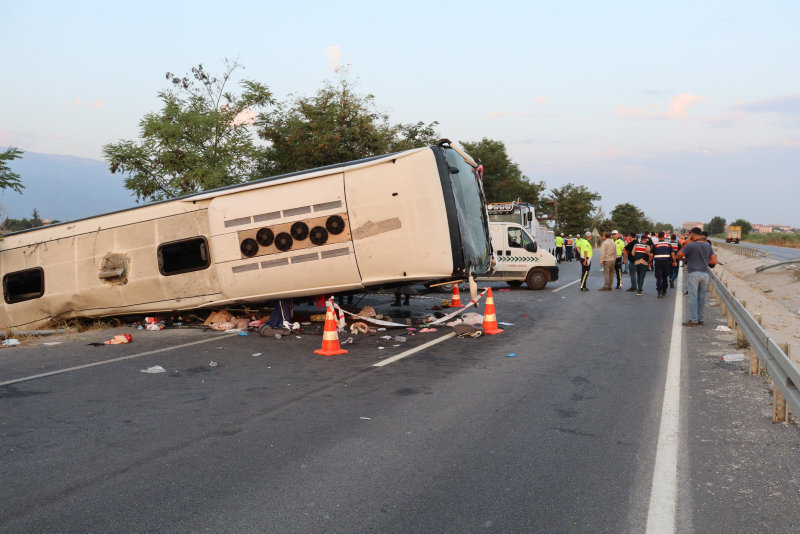 Denizli'nin Honaz ilçesinde kontrolden çıkan karayollarına ait kum yüklü tırın, bariyerleri yıkıp karşı şeride geçerek seyir halindeki yolcu otobüsüne çarpması sonucu meydana gelen kazada ilk belirlemelere göre 6 kişi öldü, 43 kişi yaralandı.