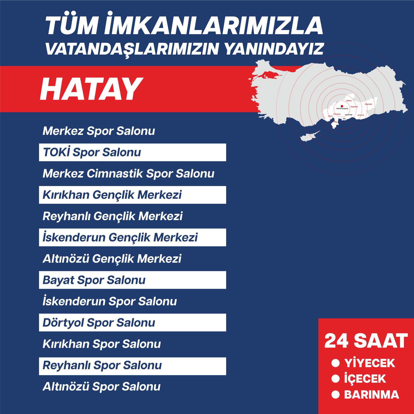 Deprem bölgelerinde hizmette olan tesisler hangileri?