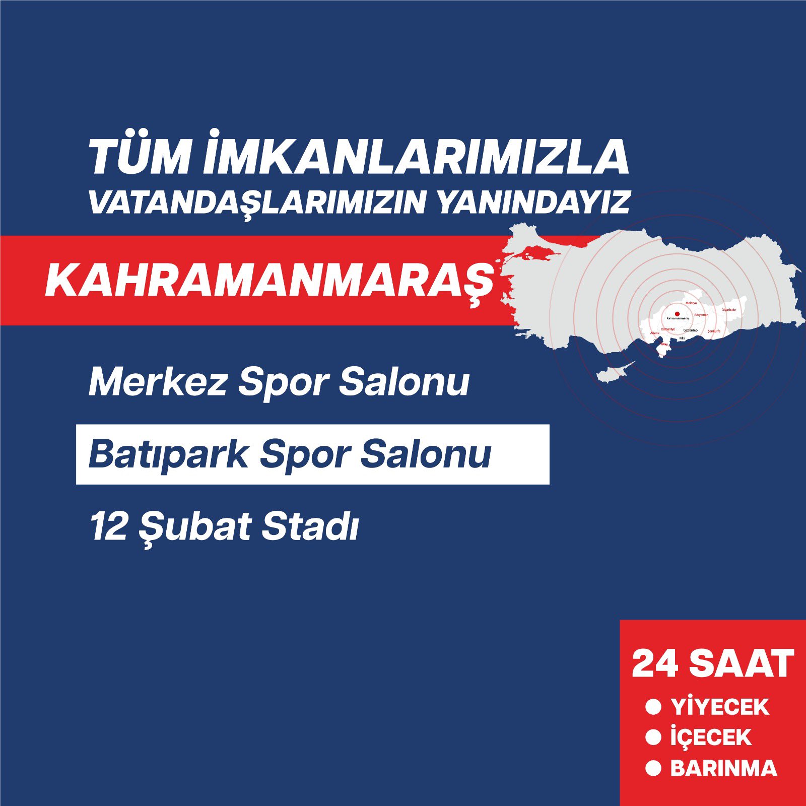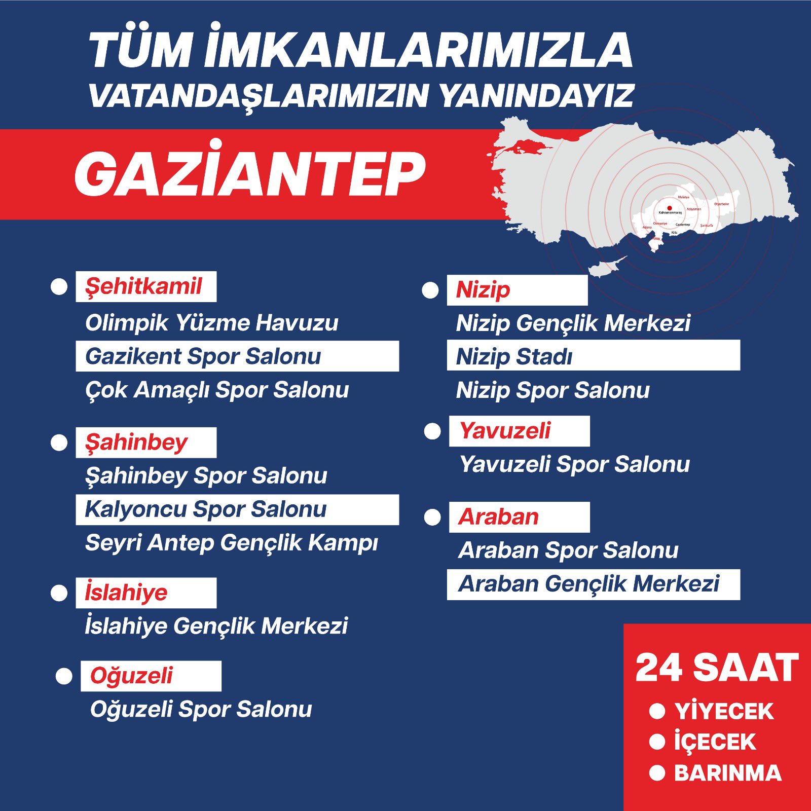 Gençlik ve Spor Bakanı Mehmet Muharrem Kasapoğlu, sosyal medya hesabından yaptığı paylaşımda deprem bölgelerinde vatandaşların hizmetinde olan bakanlığa ait tesisleri paylaştı.