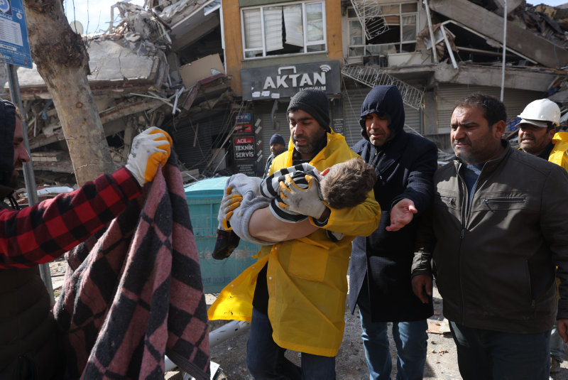 Kahramanmaraş'ta meydana gelen 7,7 ve 7,6 büyüklüğünde iki deprem, Adana, Adıyaman, Diyarbakır, Gaziantep, Osmaniye, Kilis, Şanlıurfa, Malatya ve Hatay'da büyük yıkıma yol açtı. Enkaz altında kalanları kurtarmak için arama-kurtarma çalışmaları aralıksız devam ederken, yerli ve yabancı ajanslar deprem bölgesinde yaşananları çektikleri fotoğraflarla dünyaya duyuruyor. İşte deprem bölgesinden çarpıcı fotoğraflar...