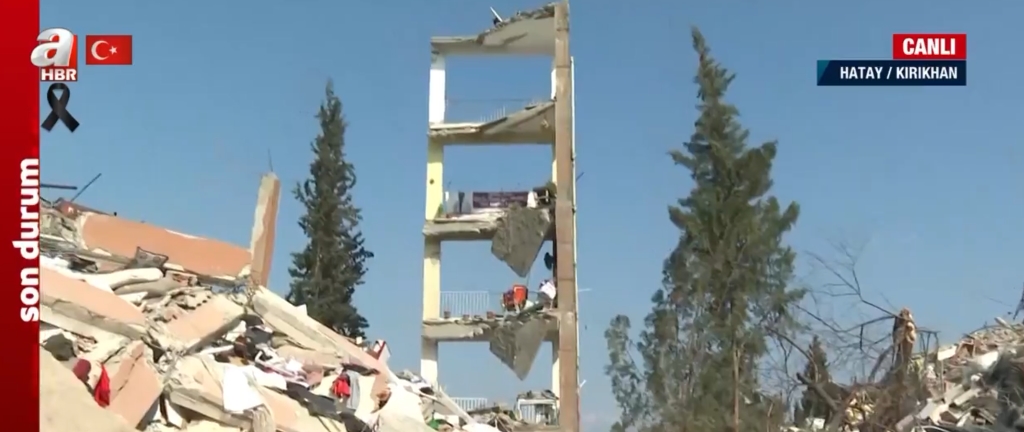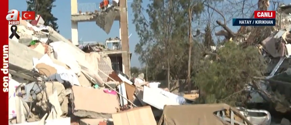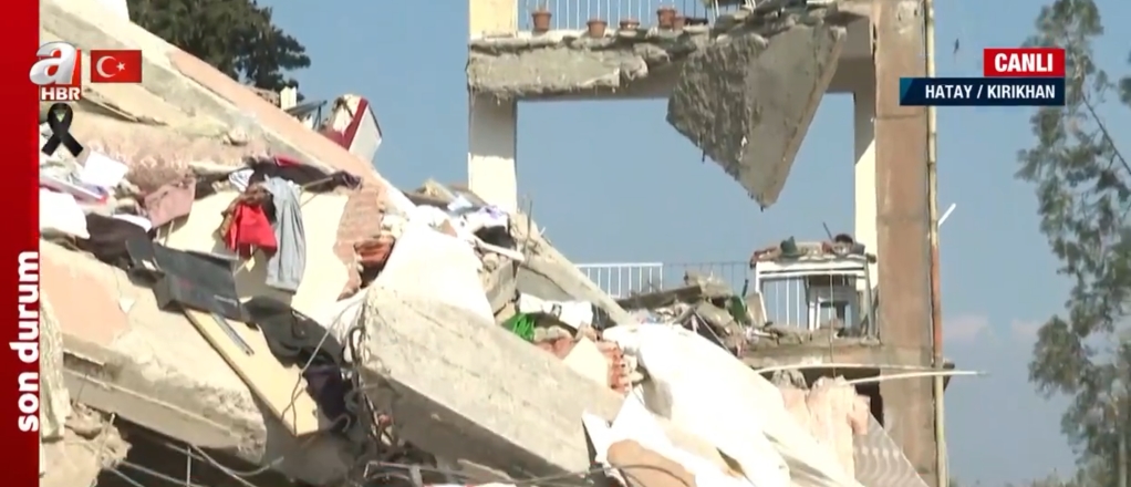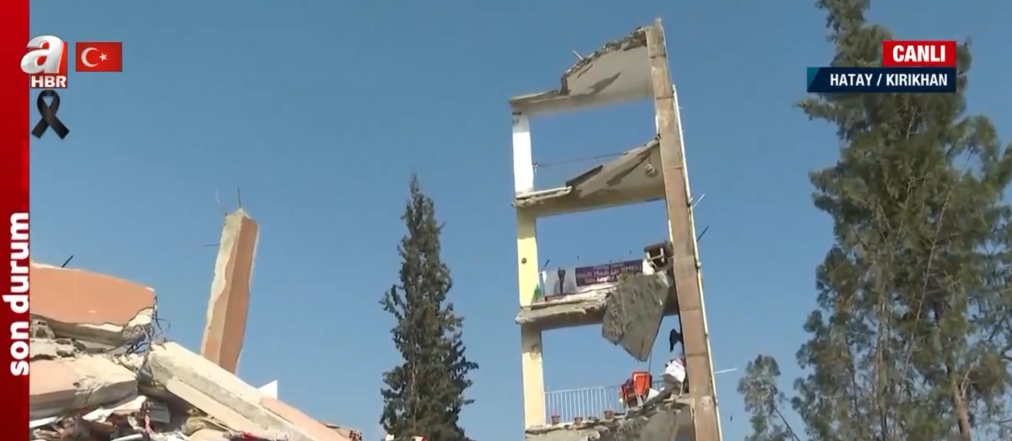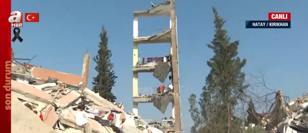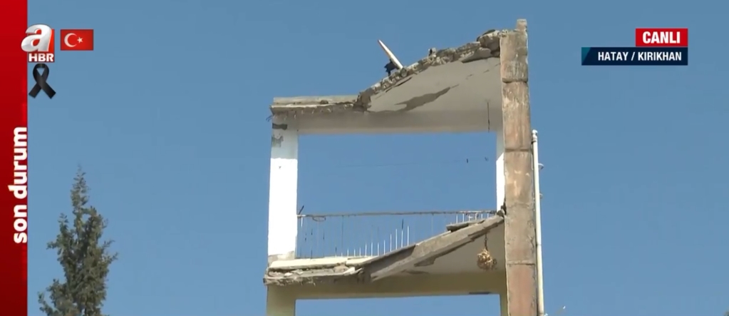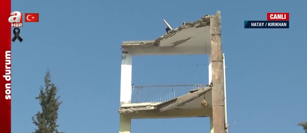 Bölgeden son durumu aktaran A Haber Programlar Şefi Emine Kavasoğlu 5 katlı binadan geriye sadece balkonu ekranlara taşıdı.