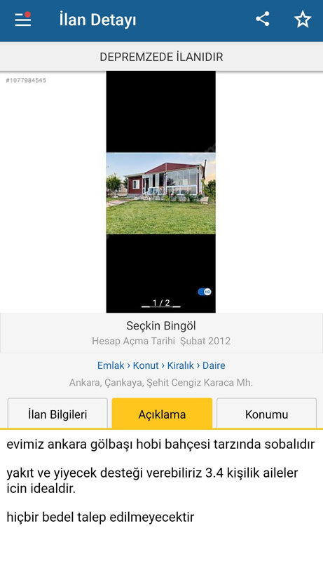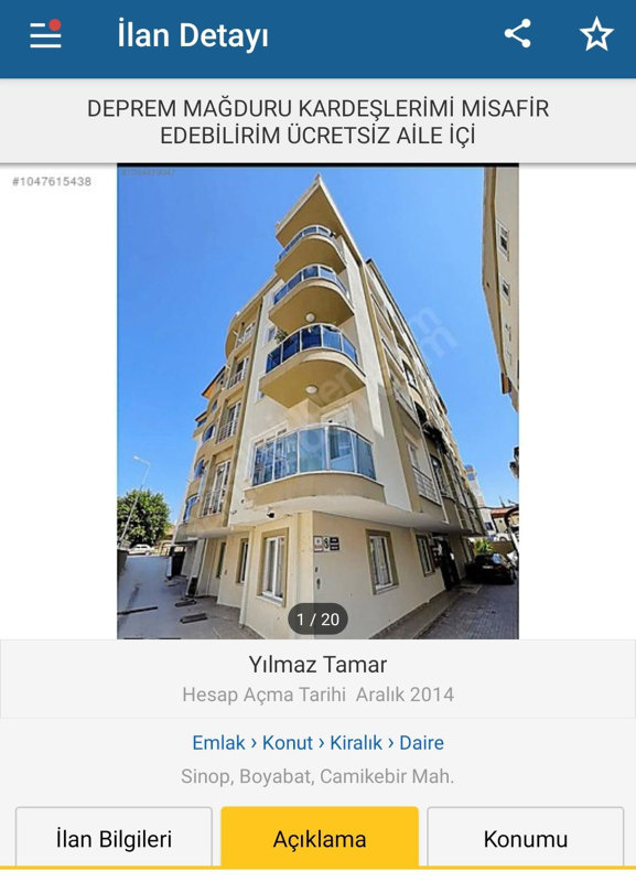 İlanlarda Kayseri, Yozgat, Bitlis, Samsun, Malatya, Gaziantep, Ankara, İstanbul, Aksaray, Sinop, Zonguldak, Kırşehir, Çorum, İzmir gibi birçok ilden depremzedemler için ücretsiz verileceği duyurulan ve çoğunluğu da eşyalı evlerin ilanları yer alıyor.