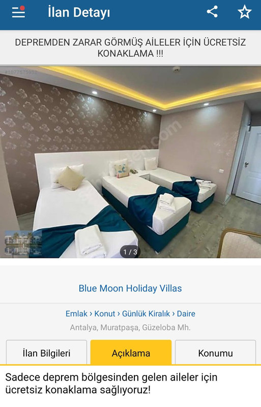 Kemer ilçesinde 2+1 bir evi bulunan kişi, yayınlandığı ilanda, "Duygularım karışık, hiçbir şey yapamamak bizi derinden üzüyor.