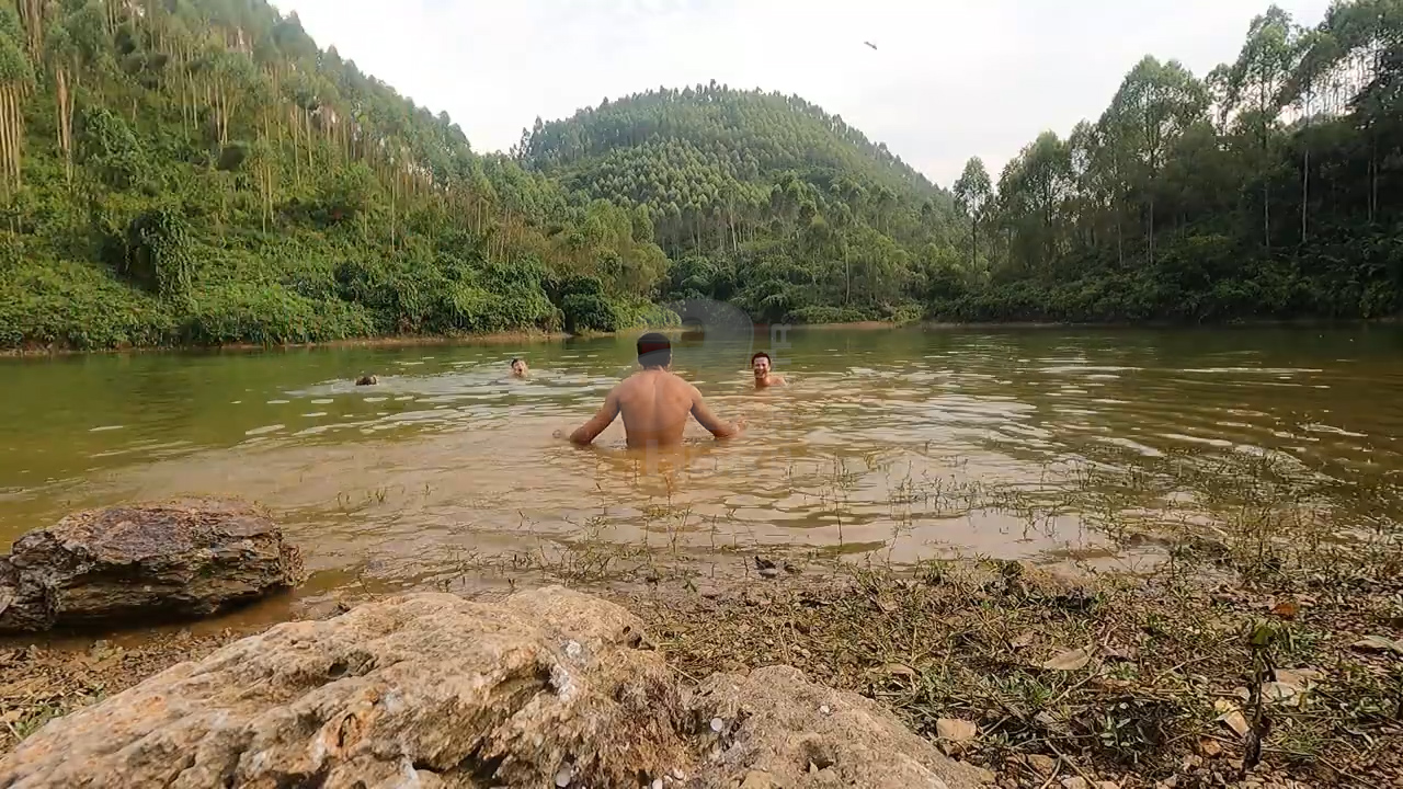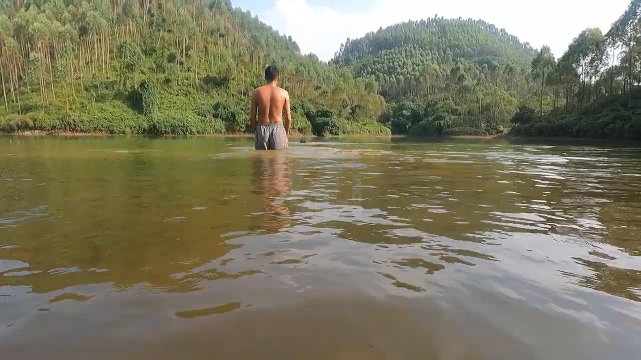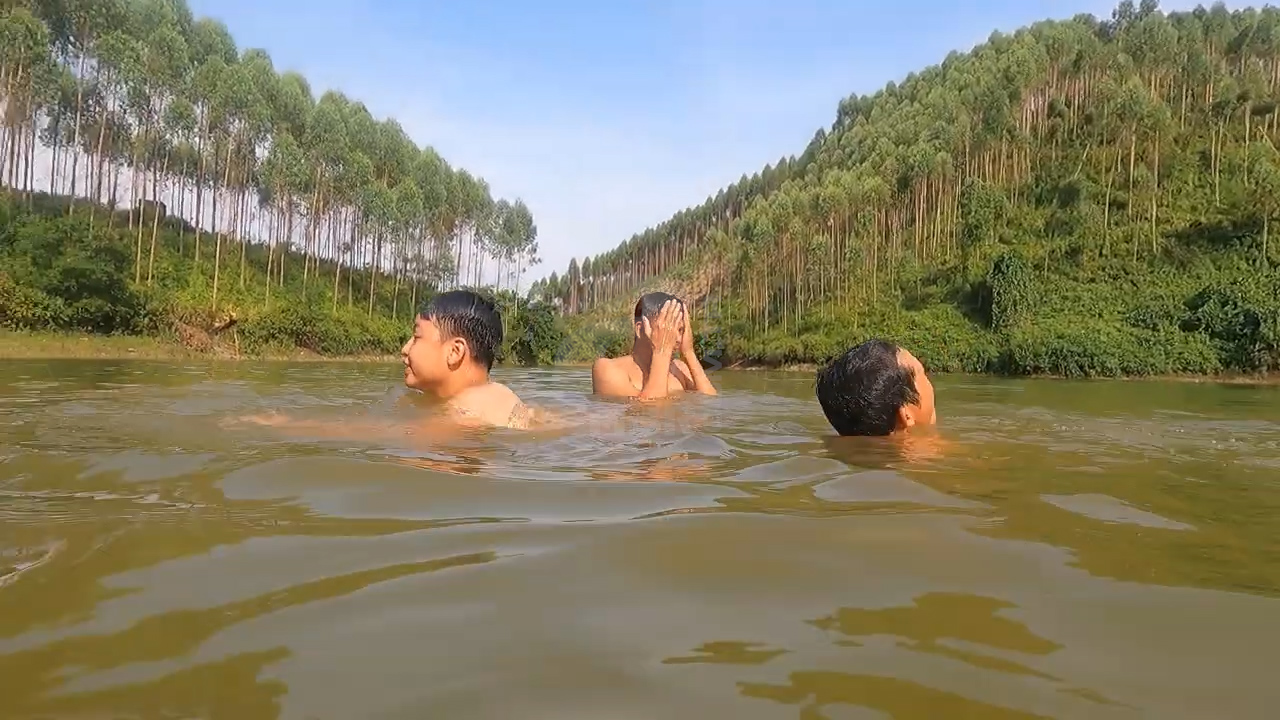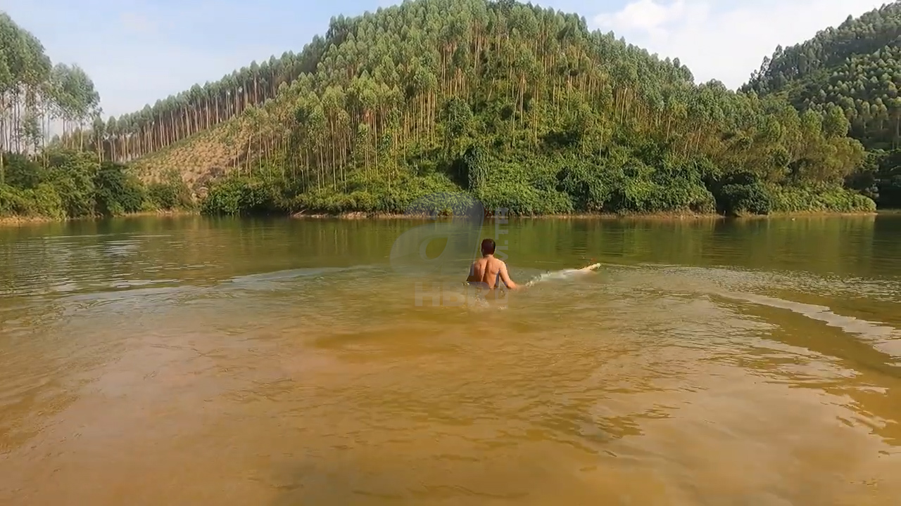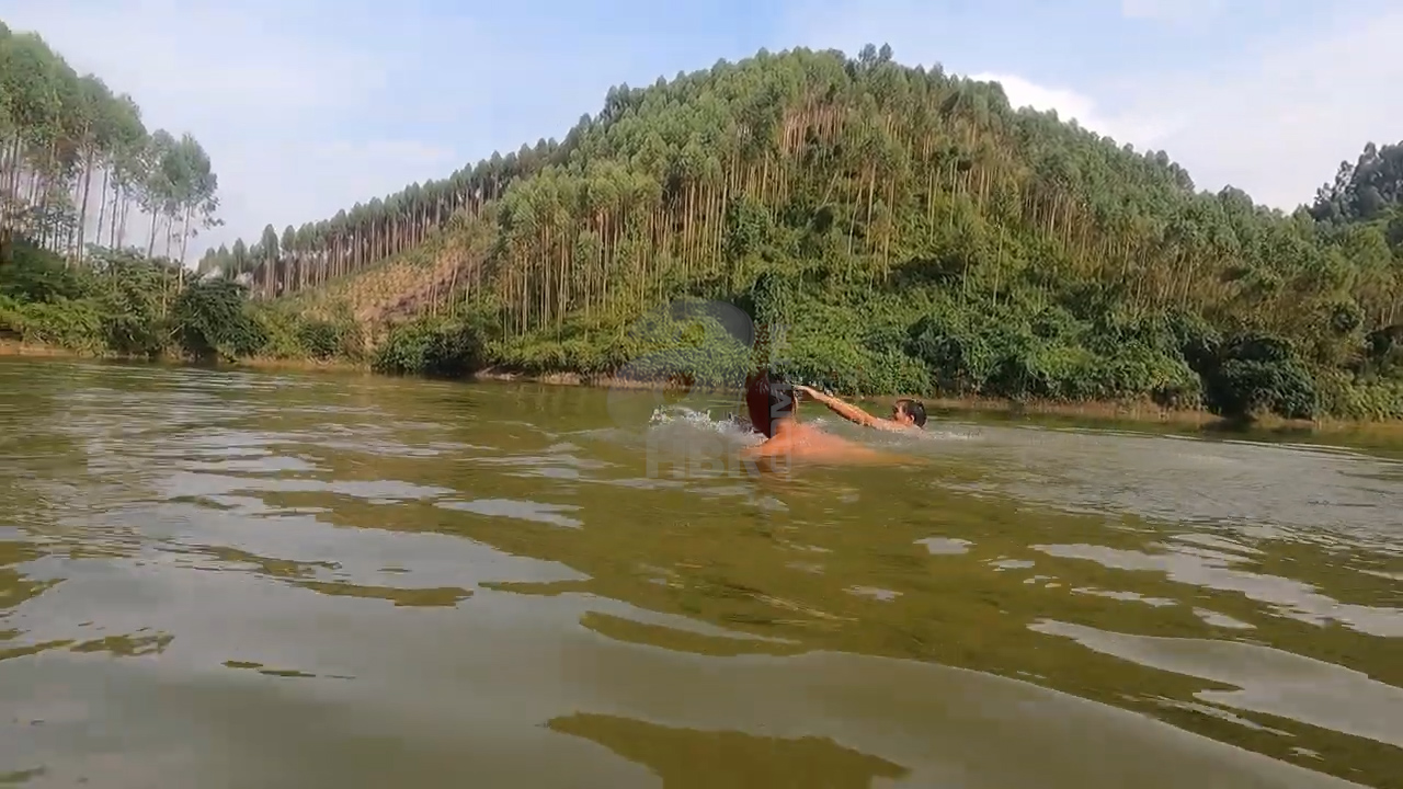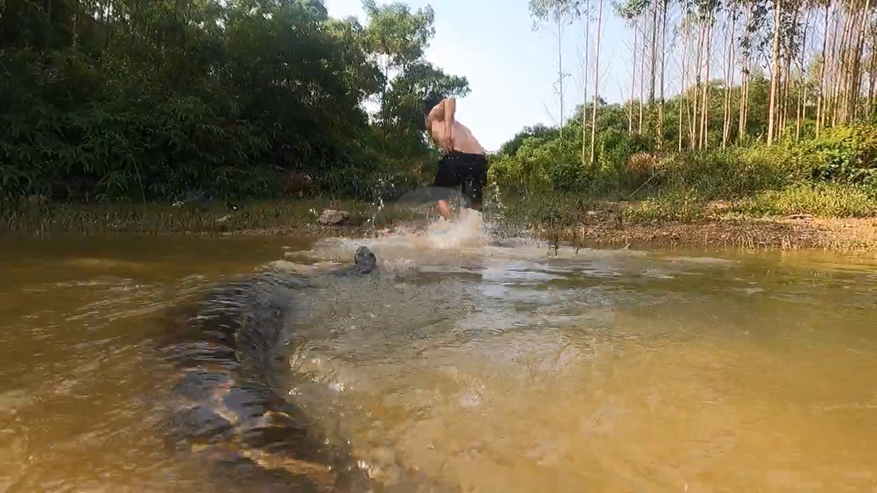 Nehirde yüzen bir grup arkadaş hiç beklemedikleri bir olayla karşı karşıya kaldı. Suyun kenarında oturan bir kişi anakonda yılanını kendisine doğru geldiğini görünce hemen sudan çıktı.