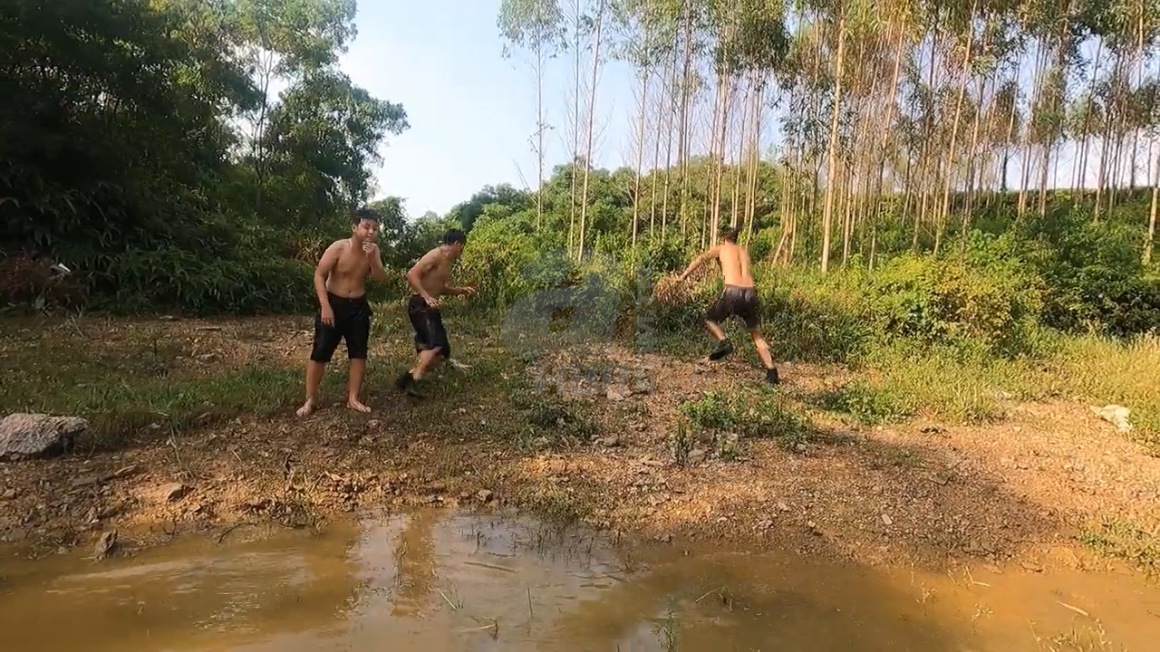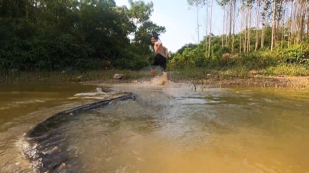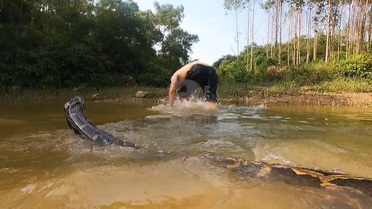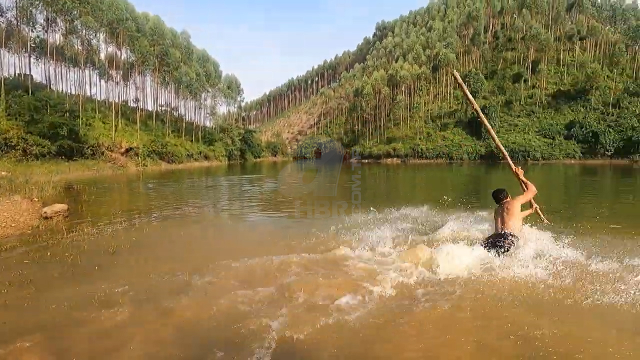 Daha sonra sudan çıkan gençler büyük bir çılgınlığa imza atarak ellerinde sopalarla nehire dalarak yılanı yakalamaya çalıştı.