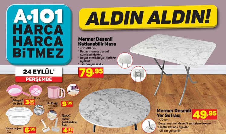 A101 24 Eylül 2020 aktüel ürünler kataloğunda elektronikten beyaz eşyaya, ev tekstilinden mutfak ürünlerine kadar birçok ürün müşterilerin beğenisine sunuldu. Bu hafta gelecek olan ürünler arasında evinizin ihtiyacı olan çoğu ürün bulunuyor. A101 24 Eylül kataloğunda en çok dikkat çeken ürünler arasnıda ise teknolojik ürünler yer alıyor. İşte A101 24 Eylül 2020 aktüel ürünler kataloğu ve fiyat listesi...