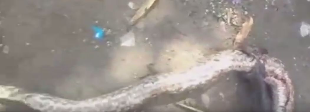 Hemen olayı kayda alan köylülerin paylaştığı görüntülere göre, yaklaşık 3.6 metrelik bir kobra yılanı, yaklaşık 3 metre uzunluğundaki bir pitonu yutmuş, sadece kuyruğu dışarıda kalmış.