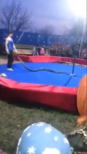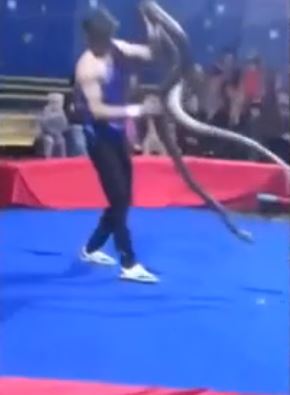 Rusya'da bir sirkte yılanla gösteri yapan adam, yılanın boynuna doladıktan sonra yere düştü. Seyirciler önce adamın yere düşmesinin gösterisinin bir parçası sandı ama korkunç gerçek daha sonra anlaşıldı.